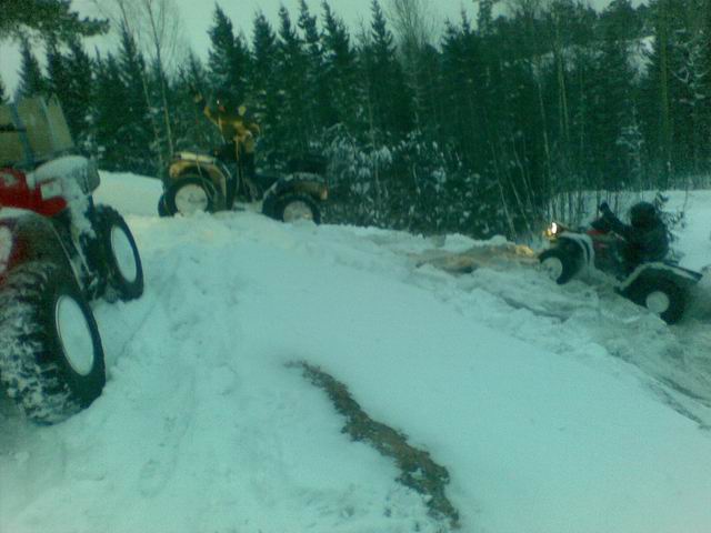 Ainoastaan kolme kuvaa tarttu mun kännykkään ja kaikki samasta paikasta jossa taisteltiin kukkulan kuninkaan tittelistä. Honda on ylhäällä, taustalla Baxxter ei hellitä kaasusta vaan siirtyilee rinnettä sivusuunnassa puolelta toiselle ja etualalla Moggi on jo turvautunut vinssiin Sama toisesta suunnasta, Baxxter liikkuu rinnettä sivusuunnassa välillä toiseen suuntaan ja Moggi on jo vetänyt ittensä vinssillä ylös Baxxterin ja Moggin poistumisreitti: Persedellä alas tosta kohdin. |