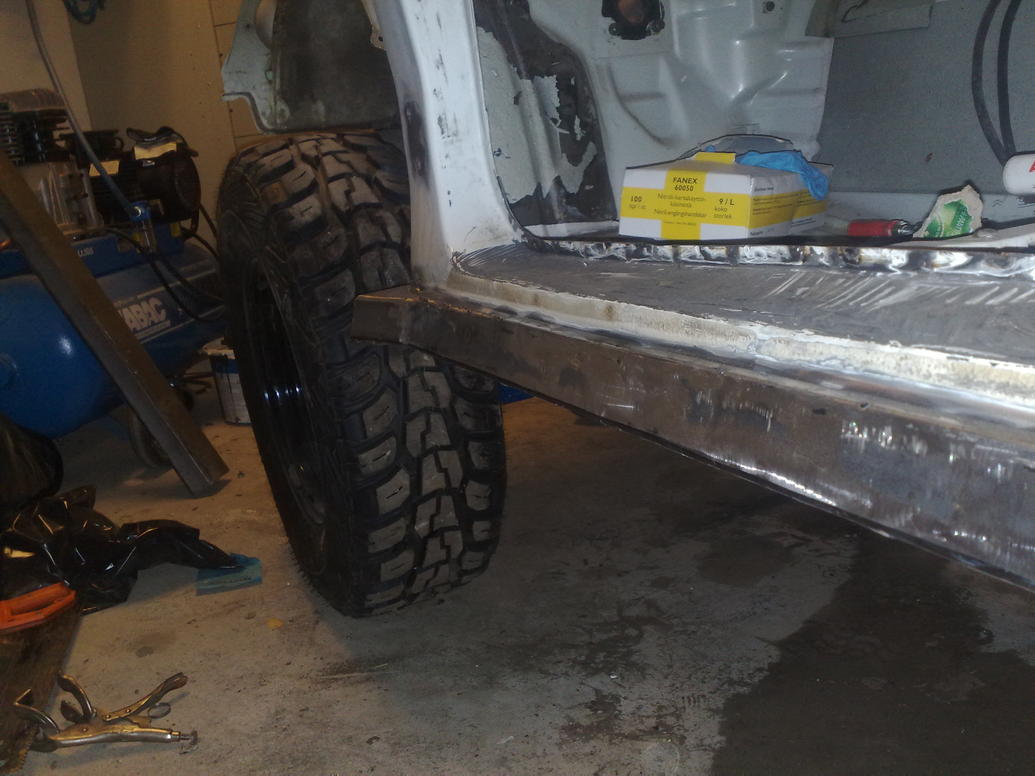 Vähän puskuri edistyny,irrotin taka-akselin, etulokasuojia avarrettu 31 renkaille sopiviksi jos sellaset sit seuraaviks renkaiks laittas.