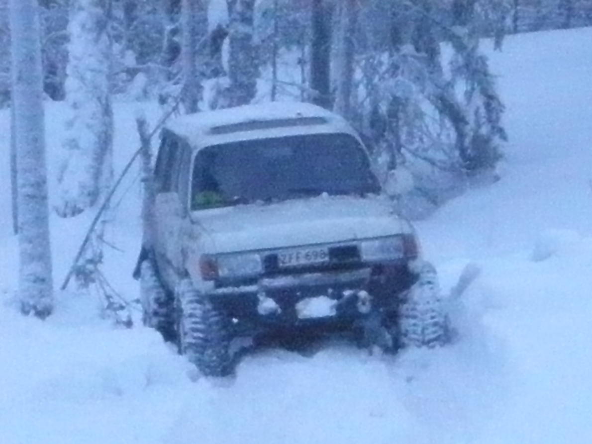 Tehny tuo nollakeli aika mielenkiintosen tuosta lumessa ajosta. Päällä pirun raskasta lunta työntää auton edessä ja pohjalla mistä pitäs pitoa saada niin on ihan sellasta puuteria. |
