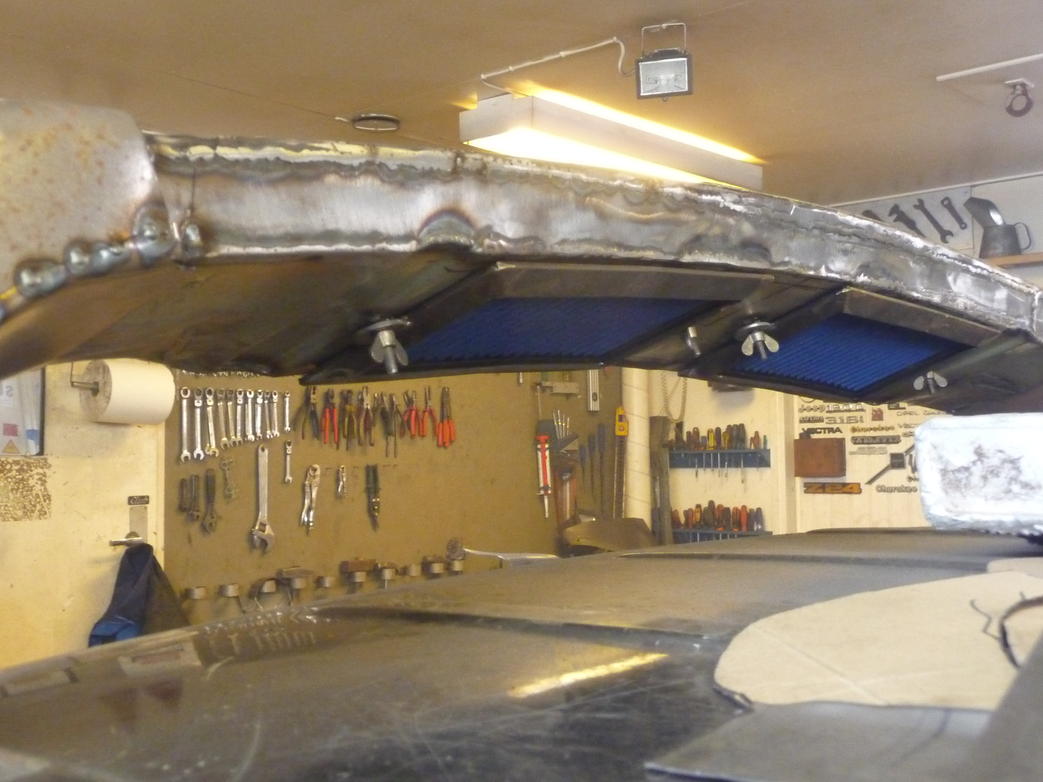 Eiköhän toi diagonaali ole ihan sääntöjen mukainen kun kukaan ei ole vastavaitettä esittänyt. Täytyy huomenna tehdä loputkin kaaret samasta matskusta Missähän välissä paparazzi kerkes kuvan ottaa. Peltihommat alkaa jo sen verran tympiä, että tullut näperreltyä välillä muita osia kuin koria. Laitoin ohjaussimpukkaan pari lisänippaa ja siihen saikin menemään melkein koko päivän, kun ne kuulat ei meinanneet millään löytää omaa paikkaansa. Samalla hioin ja maalasin simpukan ja pari muutakin osaa.