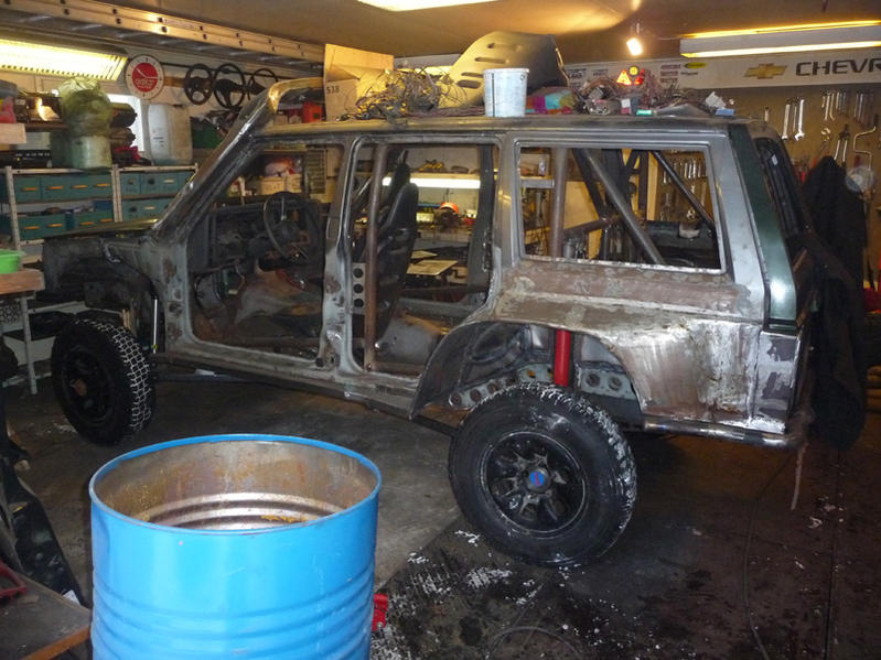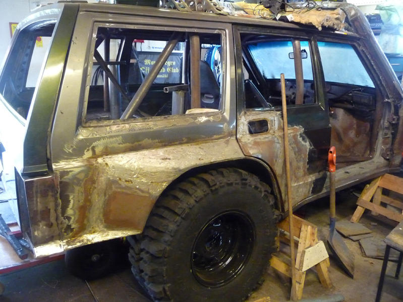Nyt on kaaria vähän nostettu ja rakennettu hieman lisääkin. Hirveästi ei ole Jeeppi edistynyt, kun aika on tahtonut mennä matalampien autojen ja 1954 Majorin korjaamisessa. Takavaloille ilmestynyt suojat ja etuakselia pikkaisen aloiteltu.