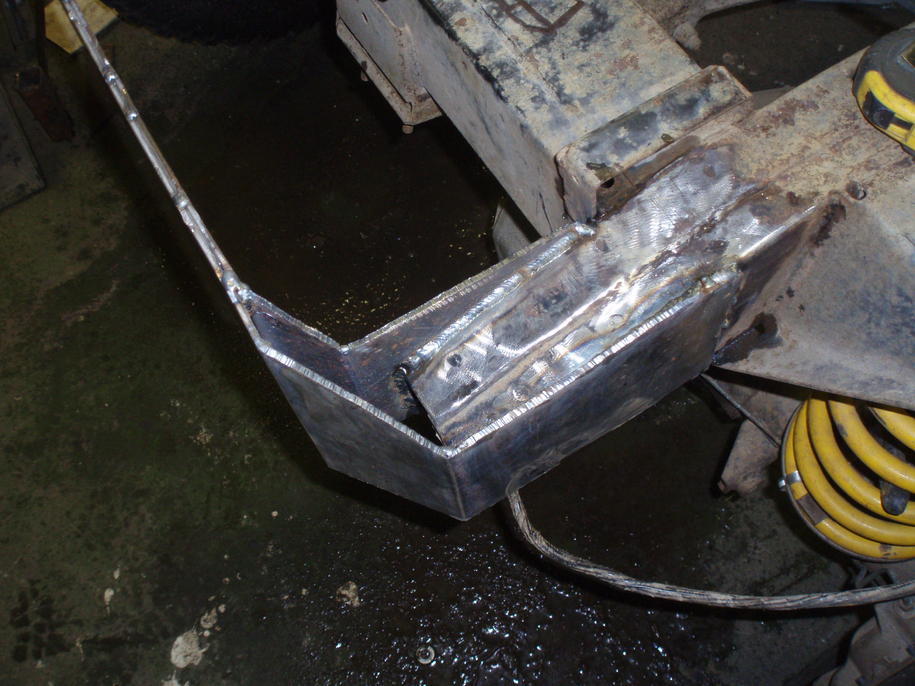 Rungon takapää hitsattu kasaan. Vinssikidan reikä vain puuttuu. Seuraavaksi kaarien ja lavan suunnittelu.