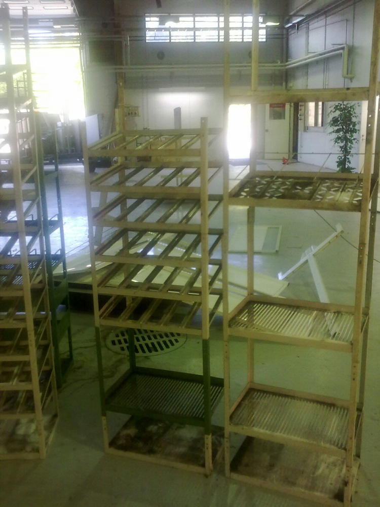 B) Hyllytason kantavuudeksi ilmoitettu kaksikin painoa, 120kg, ja 150kg. Tarkkaa tietoa en ossoo ilmoittaa, mutta sen tiijän ettei ainaskaan Hojon konetta, ja laatikkoa yksi hylly kanna...