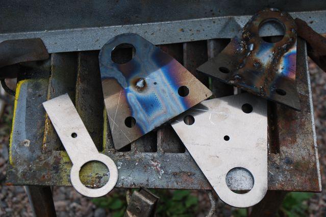 Rungon päihin lisättiin myös vahvikkeet ettei runkopalkki puristu kasaan. Helvetinmoisella työllä siistittyyn 410:n maskiin piti heti leikellä tilaa puskurille. Myöhemmin kun vinssi löytyy ja asennetaan joutuu maskia leikkelemään vielä lisää. Tällä kertaa uusi syylari säilyi ehjänä rälläköinnistä huolimatta ![]() Tässä vielä kuva Juuson piirtämistä vetopisteistä. Leikattu Optim 650 teräksestä. Vaikka ei ole kun 3mm tavaraa niin taivuttaminen oli aika homma. Lekalla piti lyödä ihan tosissaan. Hyvää tavaraa ![]() Vetopisteet valmiina. |
