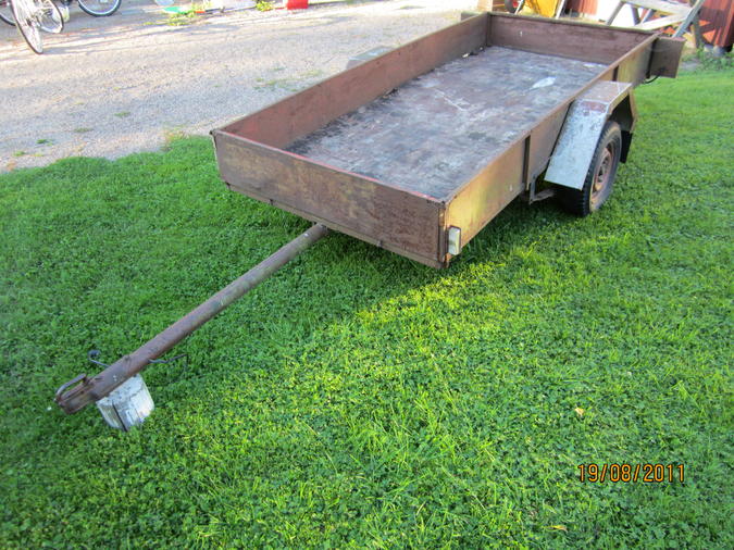 -ensimmäisen kerran tehty -77 ja "päivitetty"-90 -yksi akselinen 17m taunuksen 5 pulttisilla navoilla ja 13"kumeilla -on kilvissä -eihän tämä kovin siisti ole,puhallusta ja maalia ainakin tarvis.mutta ei se mätä ole. -koitan laittaa kuvia viikon mittaan,niin niistä selviää hieman kuntokin. |
