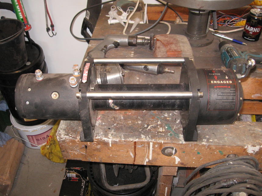 TML moottorin akselinpää pitäis näkyä tosta jarrusta.Vinssiä en viitsi ruveta purkaan enempiä kuvia varten. |
