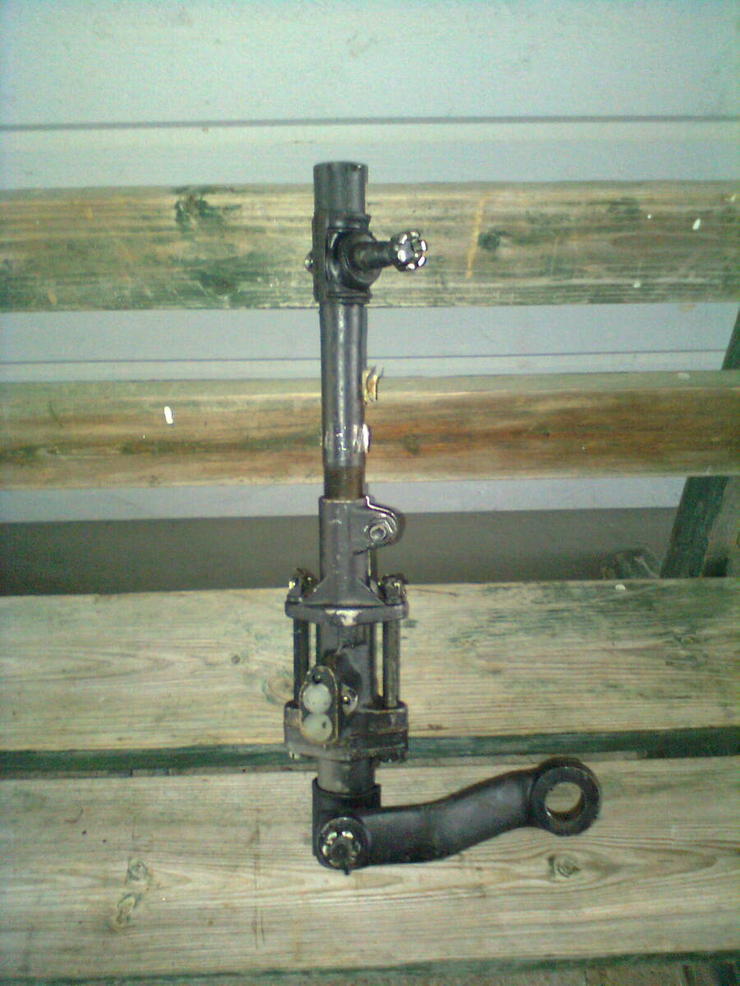 Alkuperäisversiossa tuo on ohjausvartena,varren päässä ohjausventtiili johon pumpulta paine ja lähdöt sylinteriin,sylinteri raidetankoon ja akseliin,venttiili laskee käännettäissä tarvittavan öljymäärän sylinteriin.