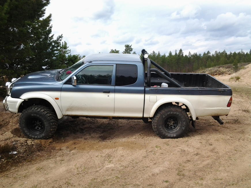 ![]() L200 "timanttista jyystöä"Tuli tommonen ajokki hommattua. Ihan vakio oli mulle tullessaan lukuunottamatta nautarautaa. Tällä hetkellä tullut lisää tuo lavakaari työvaloineen, Hellan lisäpitkät, vanteet Blazerista, 31" 10,5" 15 insat käytettynä ja korin korotus. Tarkoitus olisi vielä laitella vinssi, uutta väriä ja sen sellaista. Ja jos jotain kiinnostaa niin laitanpa tohon alle listan mitä tuohon korin korotukseen tarvii: -14kpl korotus palikoita -pidemmät etujarruletkut (itse laitoin renault clio/21 letkut ja kiinnikkeet) -hyttiin menee 8kpl M10x150 pultteja, ei löydy joka kaupasta. Kierretanko käy kanssa. -lavaan 6kpl n.M10x80 pultteja. Ja muttereita tietty. Ja hommahan kannatti aloittaa vaihtamalla jarruletkut, sitten tuuli tunneli irti, moottorin maadoitusjohto pois, pultit auki kopasta ja nostamaan koria sen verran että saa korotuspalikat väliin. Sitten vaan ruuvit kiinni ja nostamaan puskuria. Nostin tuon puskurin laittamalla etukannakkeisiin vaan 50mm rhs putkesta korokkeet jonka läpi pulttasin puskurin kiinni, sivukiinnikkeisiin vaan poraa uudet reiät sopivalle kohdalle ja pulttaa kiinni. Tämän jälkeen vaihdekepin ympärys muovia avartamaan ja homma alkaa olemaan valmis. Tolla 50mm korotukselal ei tarvinnut muokata täyttöputkea eikä rattiakselia. Yhden illan homma jos on kaikki tarpeet matkassa. Ekassa kuvassa vakio korkeus, muissa korotettuna. Tästä jatketaan kuhan keritään.