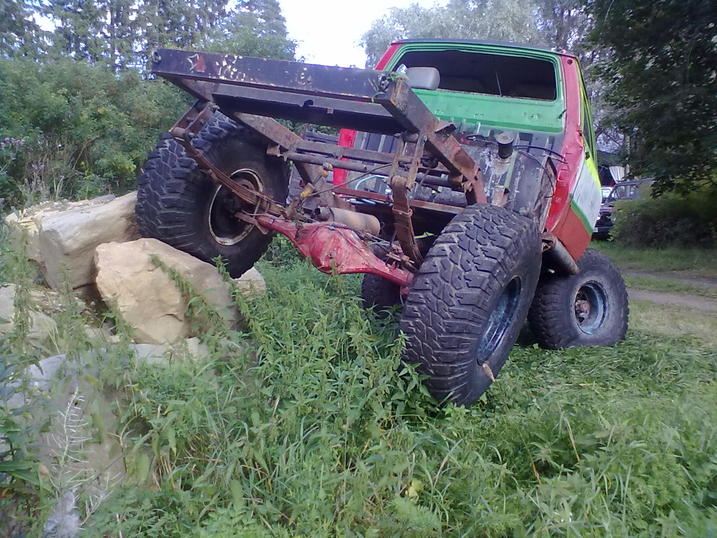 Tähän löytyy vielä takaa lyhennetty lava, keulan pellit, konepelti, loksut ja korin etu osa.