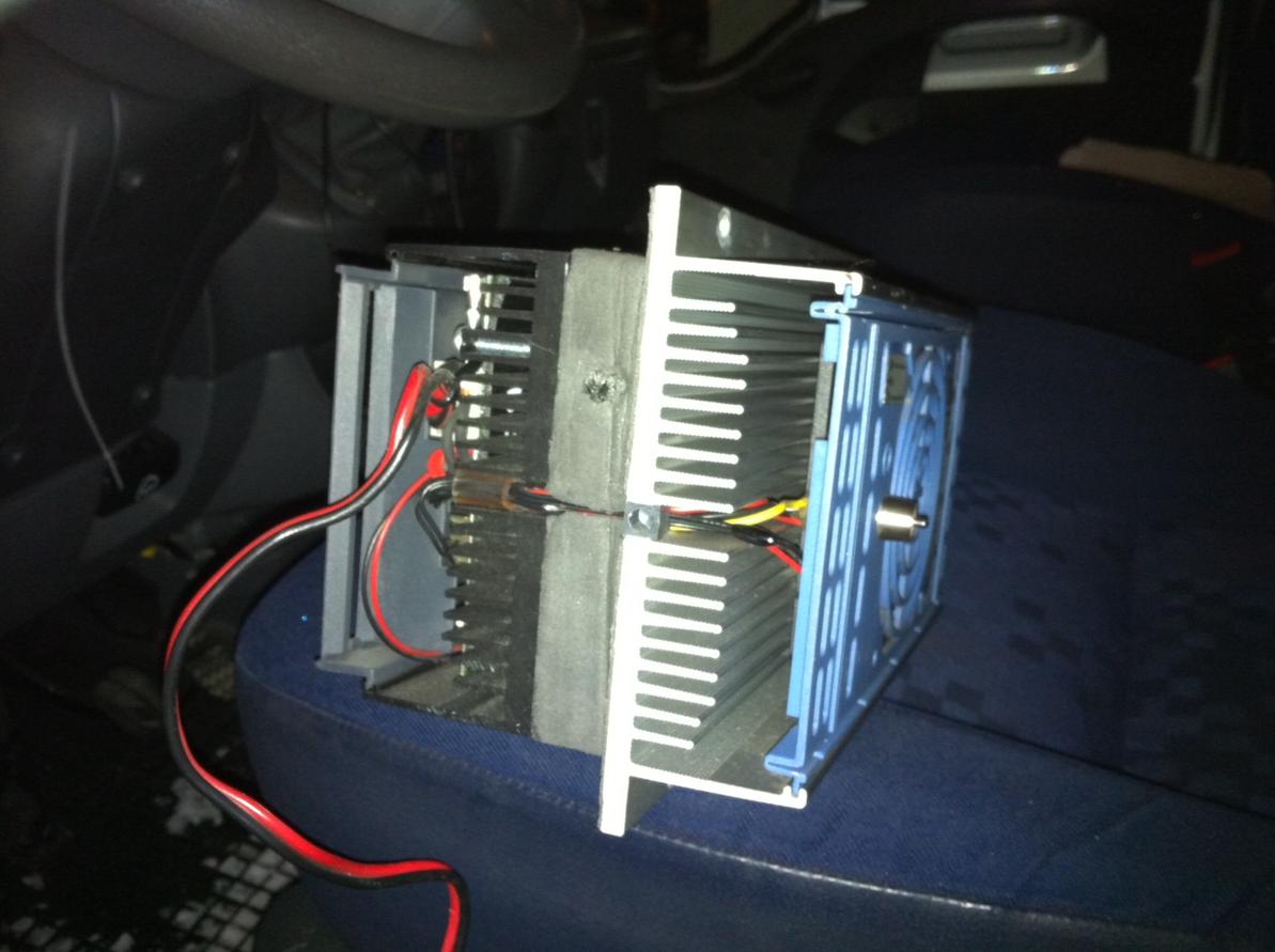 Onko keskessä eriste joka pitää kylmän ja lämpimän jäähdytysrivan erossa toisistaan? ja käytetään isohkossa, noin syliin sopivassa, laitteessa joka joskus tyhjää täynnä? ja syö 12v tai 24 volttia pahimmillaan suuruusluokkaa 100w.