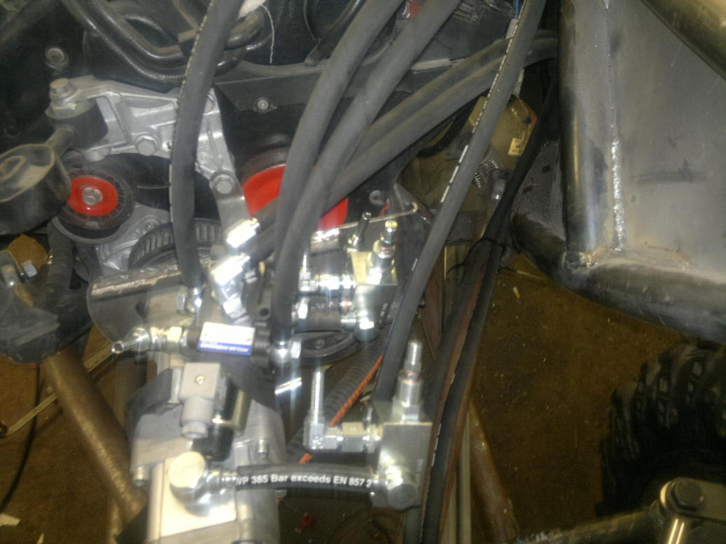 joo hydrauliikan veto jatkui tänään mut muutamaa liitintä jäi uupumaan mut niit saa sit maanantaki lissää, toi ensimmäisen kuvan hytikka jakotuki on moottoritilassa pumppujen yläpualella saa varmaan huamenna jonkun kiinnityslevyn sit varmaan pätkitään ne oikean mittaisiksi, toinen jakotukki on sit lattian alla kuskin alapualella, ja tuli sitä tehtyy tolle laturi vesipumppu hihnalla yks välirissa ilmastoinnin (jätettiin pois) rullan tilalle että saaraan vesipumppu pyärimään oikein päin, kuin myäs sain etujarrusatulat siirrettyy etupualelle että saaraan tolle ohjaukselle hiama tukea. Hitsaria orottelen sulattelee hieman lankaa ja puikkoa ja sähkäriki vois johtoi hieman levitellä mut sil taitaa olla toi rakkaus elämä aika hektisessä tilassa ku sen pitäis 14 pvä sannoo tytiystävälle tahron palvella sinnuu lopun elämää niincylä kuin alamäessäki.