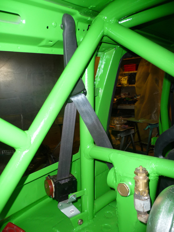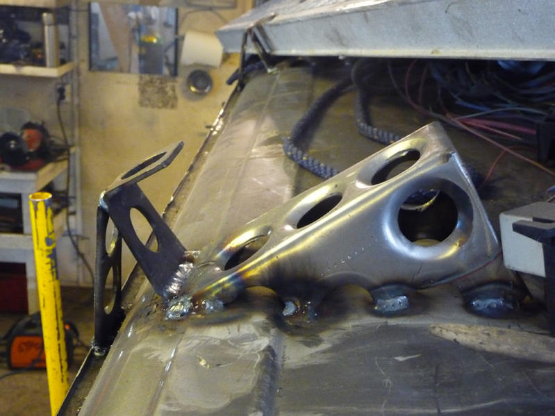 Ajosiltojen "kattotelineet" hitsattu paikoilleen. Puuttuu vielä kiinnitysjärjestelmä, yritän soveltaa samasta palikasta katolle telineen lapiota varten. Konepellissä oli sisäosat todella lahossa kunnossa ja sen vuoksi siihen tehtiin kokonaan uusi runko. Muutaman gramman kevyempikin taisi tulla alkuperäiseen verrattuna. Konepellin saranat joutui siirtämään keskemmälle jotta imuilmaputket mahtui paikalleen. Samalla konepeltiin tehtiin kiinteä korotus takalaitaan irtopalikoiden sijaan. |