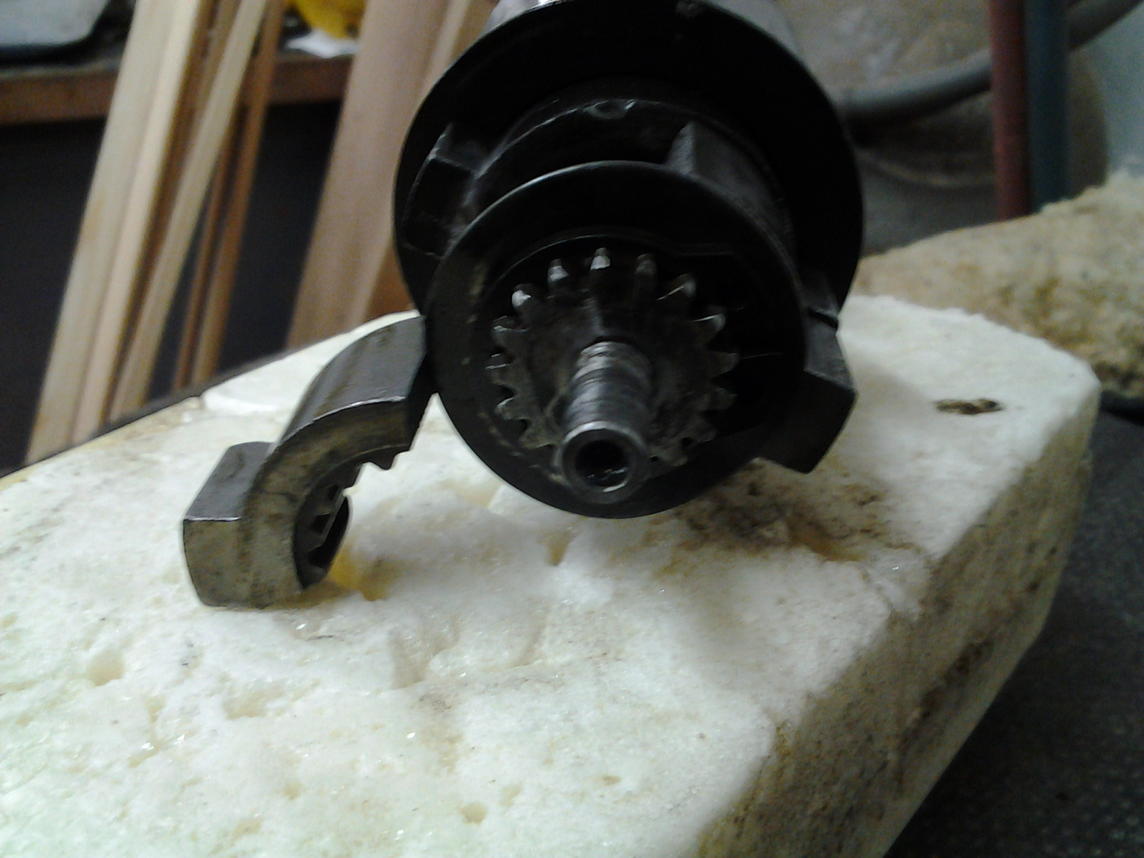 Minkälaisia osia moottorin ja jarrun välillä on? Auttaako jos moottorin puolelta koittaa kiertää myötäpäivään samalla kun painaa kalikkaa ulos rummusta?