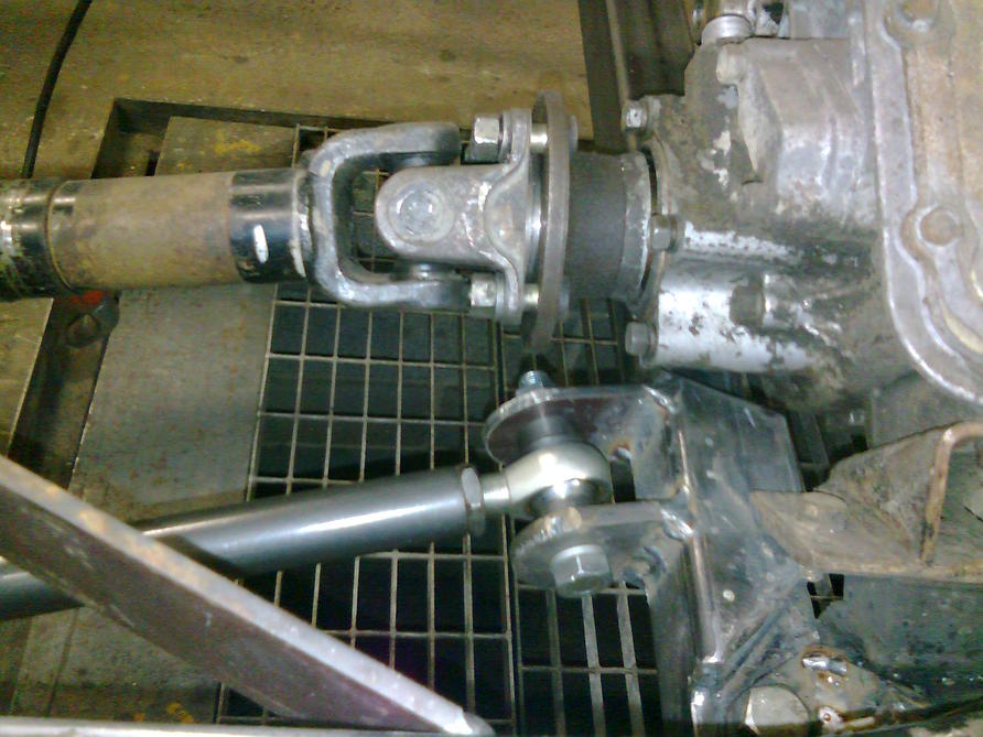 Ja itse asiassa näkyy kääntyvän tuo pinjoni kutakuinki niinku pitääkin. Tuli nuo alatukivarsien etupäät niin liki kardaania, että ei sovi enää kardaanijarru paikoilleen. Mitenhän tuo pelittäs jos laittas levyn tuohon etukardaaniin? Lopuks piti tunkkailla vähän ja ihmetellä miten se vois taipuu