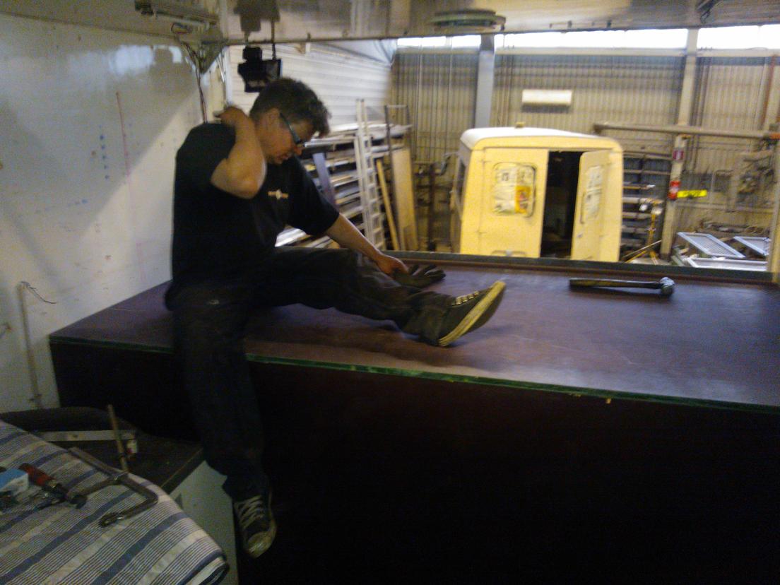 Kankku, pallo poistettu, siitä tehty Harrille kypärä kun sen pää osui kattoon pompusta volttia tehdessään Öö. Tänään turattu parihitsi saumaa ja korin pitäisi nyt olla lähestulkoon vettäpitävä suurin läntti oli apparin penkin takan seuraavaksi suurin apparinpuoleisessa katonkourussa. muuten vaan on siivottu vähän ja visioitu asiaa eteenpäin. Sami onkohan se asuntovaunu vielä ajankohtainen`? |