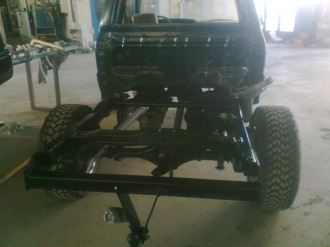 Elikkä tollanen Mazda B2500 Vm -97 2.5d aj.263tkm. Auto oli valmiiksi purettu entisen omistajan toimesta jolla oli porjekti jäänyt seisomaan pariksi vuodeksi. Autosta otettiin ruosteet pois ja pinnat oikaistiin. Lava ja suojat olivat huonossa hapessa joten hommasin uudet etusuojat ja 2600 mallin lavan. Renkaiksi tuli 10" leveät vanteet 31 kumeilla et 0. Renkaita sovittaessa huomattiin että kaaria joutuu lievästi levittämään. Monet muoviset ja lasikuituset kaaret kokeiltiin mutta tultiin siihen tulokseen että laitetaan 5cm laput väliin. Korin valmistuttua auton kori irroitettiin ja runko käytettiin hiekkapuhalluksessa, epoksoimassa ja massaamassa. Rungon takaisin saatua laitettiin korin ja rungon väliin 6cm koropalat, jotka kaveri sorvasi töissä. Auto hiottiin sisältä ja päältä. Auto maalattiin (maseratin) värillä. Samalla värillä maalattiin sisälle kaiutin korokkeet, puskurit ja peilit. Peileihin tehtiin sivu vilkuille paikat koska suojaan ei voinut enää vilkkuja asentaa. Autoon asennetiin kaikki uudet valot ja johtosarjat. Ennen lavan asentamista lavan sisä osaan ruiskutetiin U-polin lavapinnoite. pinnoitteen kuivuttua lava paikoilleen. ennen sisustan kasaamista koko hytti vuorattiin äänieristeellä jotta saataisiin hytistä hiljaisempi. eristeiden asennettua sisustaa kasaaman ja musavehkeitä asentamaan joina toimii alpine soitin 2X 8" groundin subia, groundin vahvari ja 3 tie kaiuttimet. penkeiksi valittiin -91 supran sähköjakkarat. Auto 4-pyörä suuntaukseen ja katsastukseen. Leimalle muutoskatsastetiin renkaat, levitys ja korotus. Leima tuli ongelmitta ja nyt ajellaan hyvillä mielin....