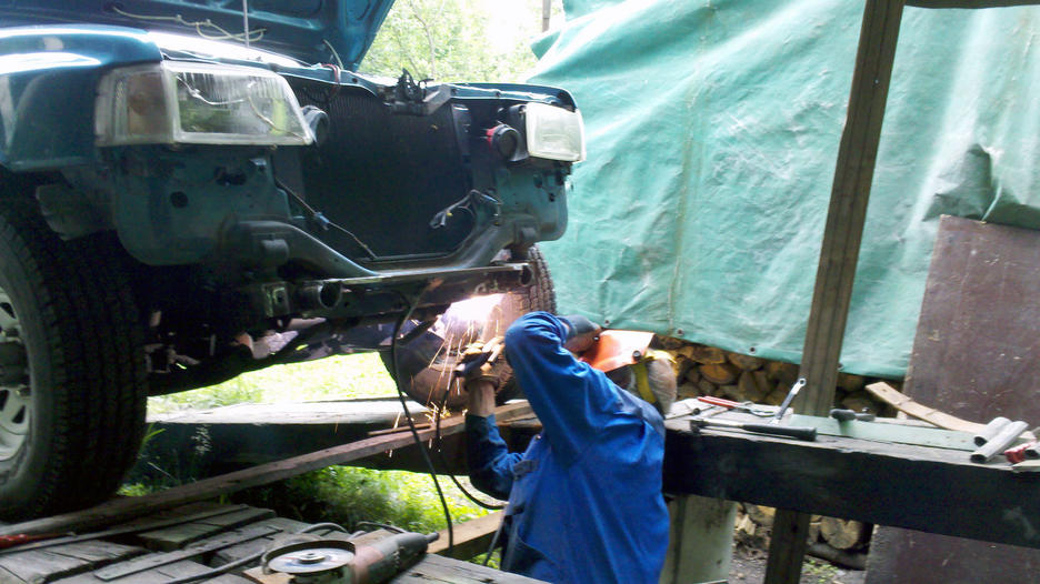 Alkupuolella kesää tuli hävitettyä mp pois, ja sen jälkimainingeissa kotiutettiin täällä palstalla käydyn pohdinnan jälkeen tämä... Kotimatkalla ääni kabiinissa lisääntyi hieman, mutta laite kulki hienosti, ni en sitte sen suuremmin stressannu. Kotipihassa sitten selvisi että perä oli puskenu öljyä pihalle. Ostaessa oli kyllä tieto, että tihkuu, mutta ny oli tullu reilummin, toki edelleen pikkuhiljaa yli 100km matkalla, mutta kuitenki murikka selkeästi märkänä, ei kuitenkaan sisältä vielä kuivana, oisko noin puolet kadonnu. Syyksi paljastu tukkeutunu huohotus, samalla tuli stefa uusittua. No uudet öljyt sisään ja laitetta tulille. Ei inahdakkaan. Parin-kolmen illan auton tuloksettoman roplaamisen ja englantilaisen opeliksipalsta tutkimisen jälkeen rälläkkä soimaan ja kontin pohjaa reikä, ku ei huvittanu alkaa tankkia irrotteleen. ...Tässä vaiheessa päässä soi vahvasti se surullisen kuuluisa opeli biisi... Päältä löyty johdoista kontaktivika, liitokset kuntoon ja samalla heräsi polttoainemittarikin henkiin. Samassa rytäkässä myös bensaputkia tuli uusittua. Tankkihan on muovia jo alunperin ni se ei ruostu näissä. Sitte koeajoa noilla alla olevilla renkailla, ja lopulta pohjasta kiinni traktorin urien väliin. Ilman asianmukasia apuvälineitä tietenki, onneksi sentään kirves oli. Puun rungoilla auton rungon alta kammettiin autoa ylös, mutta sehän pitää nousta pilviin ennen kuin rengas vähääkään nousee ja alle saa tavaraa. Muutamaa päivää myöhemmin motonetistä tarttu farmitunkki eli maastotunkki mukaan. Siihen näperreltiin hieman lisäosia, jotta voidaan tunkata suoraan renkaasta autoa taivaalle, näin kaikki nostetut sentit on paljo tehokkaampia, ku rungosta nostaessa, jollo rengas roikkuu maassa... Sitte eräänä iltana saksan ebaystä tarttu tämmönen kiinavirveli ostoskoriin... ...papereiden mukaan pitäs 5900kg kiskoa, toki hitaasti, mutta mihinpä se ny nii kiire ois... ...ja keulaan tinailtiin hieman lisää tavaraa... ...isäukolle kiitos kipinämiehen roolista... Eli rungon päissä oli ilmeisesti jotku törmäystä varten olevat putken pätkät. Niiden kiinnitys ja jäykistys varmistettiin lisähitseillä ja kulmaraudoilla. Väliin varmasti riittävän paksu latta, ja päälle sopivia nurkista löytyneitä korokkeita. Kuvat on huonoja kännykällä näpsittyjä, mutta väittäsin kiinnityksen olevan varmasti tukeva. Sitten vain keula nippuun. Ruma karjapuskuri lensi lepikkoon. Samoin joutilaat astinlaudat. Varastossa odottelee mukana tulleet nastoitetut 31" insat liukkaampia kelejä, ruuvataan sitte alle ku hirviöiden jahtaus pääsee kunnolla vauhtiin ja kelit liukastuu. Tuningin nimissä myös opel-logo lensi maskista lepikkoon. Alkuajan murheiden jälkee opelilla on päästelty reilu tuhat huoletonta kilsaa tässä kesän mittaan. Joku ilta pitäs ruuvailla lisäpitkät takas keulille ku kelit tässä alkaa pimenemään. |