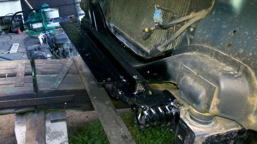 Jo aiemmin tekemäni laatikoiden suojan sain pulttailtua paikoilleen, kun laatikon öljyt tuli vaihdettua ja öljynlämpöanturi lisättyä vaihteiston öljypohjaan. Sitten aloittelin helmapalkkien rakentelua. Tuossa valmistuu välitukia helmapalkin jatkeeksi tulevalle putkelle. Sitten tulikin jo valmista. Samalla vähän kokeilin aiemmin ostamiani camo-maaleja. Aattelin kokeilla, kuinka kauan menee, että auto on maastoväreissä, jos aina maalailujen ollessa ajankohtaisia, maalaa tuollaisella värityksellä. ![]() Ja kuten kuvasta näkyy, en jaksanut tehdä tuolle lokarin pellille mitään uutta kiinnitystä, kun ihan yhtä nopea se on irroittaa ja kiinnittää rälläkän ja hitsauskoneen avulla... Jos vaikka ens viikolla sitten toinen puoli valmistuisi. |