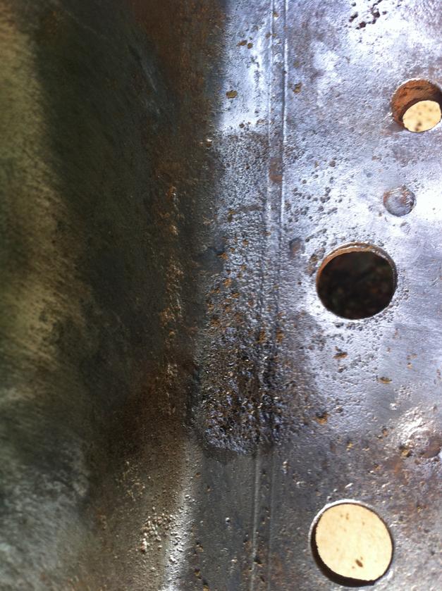 Monessa kohtaa tuommosia laajempia syöpymiä, josta tuli maalin poiston jälkeen läpi diitselit.