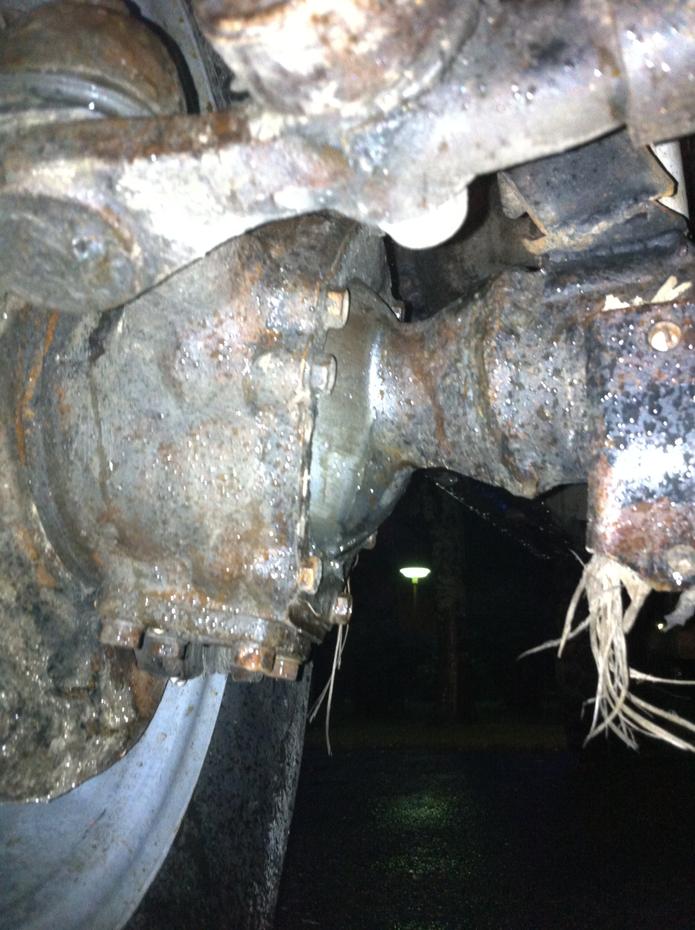 Yks kuva riessusta, kun tractionbar antautu. Ja pohdintaa oli jo siellä noista patrollin kääntöpäistä, että onko ne normaalistikki vähän kallellaan ??? Vai onkohan mulla ainut tapaus