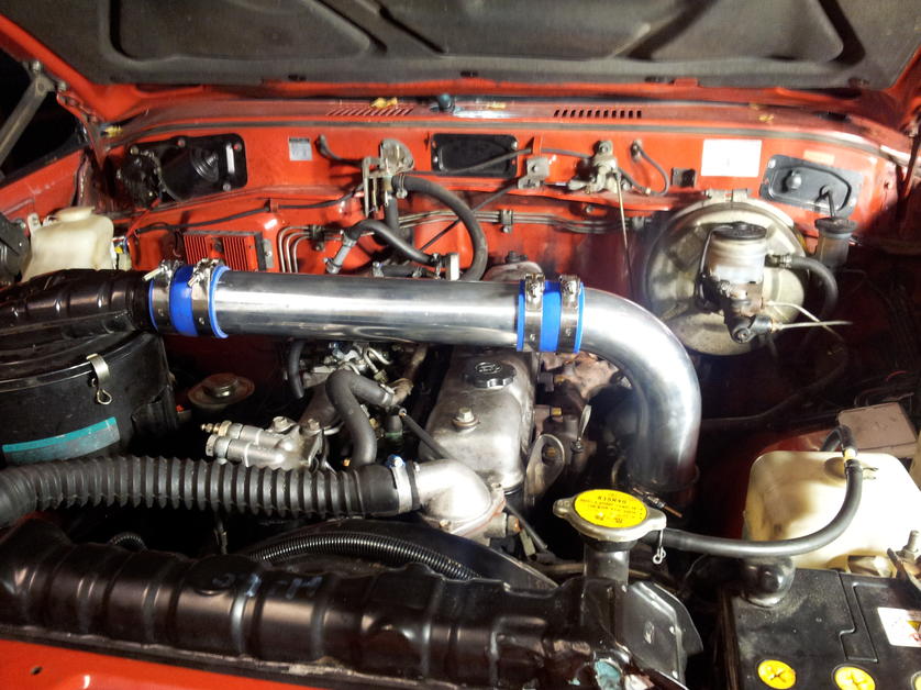 Ilmanotto tuli nyt tuolta samasta kotelosta, mistä lämppärin puhallin ottaa ilman. Uusi putsari syntyi pienestä peltiämpäristä, pätkästä 160 mm putkea, 3" pakoputkesta ja taipuisasta ilmanottoletkusta ja sen kartioista. Pultteja, prikkoja ja siipimuttereita sekä klemmareita myös. Ja tuollainen suodatin. Tuossa paikallaan ja mittailut seurauksena tulleet epäilyt osoittautuivat todeksi. Konepelti ei mahdu kiinni ilman kohtuutonta painamista... Tämmöisiin hommiin sitten seuraavaksi. Aikani hitsailtua ja hiottua pääsin lopulta maalailemaan. Tuo maalaamo ei nyt ihan kaikista paras, mutta eipä siellä ainakaan satanut ja tuullut ![]() Tuommoinen siitä sitten tuli ja nyt mahtuu konepelti kiinni, vaikka se tuossa kuvassa ei kiinni olekaan. Ja mahtui se toinen akkukin paikoilleen. Tuossa vielä hieno säleikkö, josta liika kuuma pääsee pois pellin alta. Kokeiltaessa tuntui jopa käytännössäkin niin toimivan. |