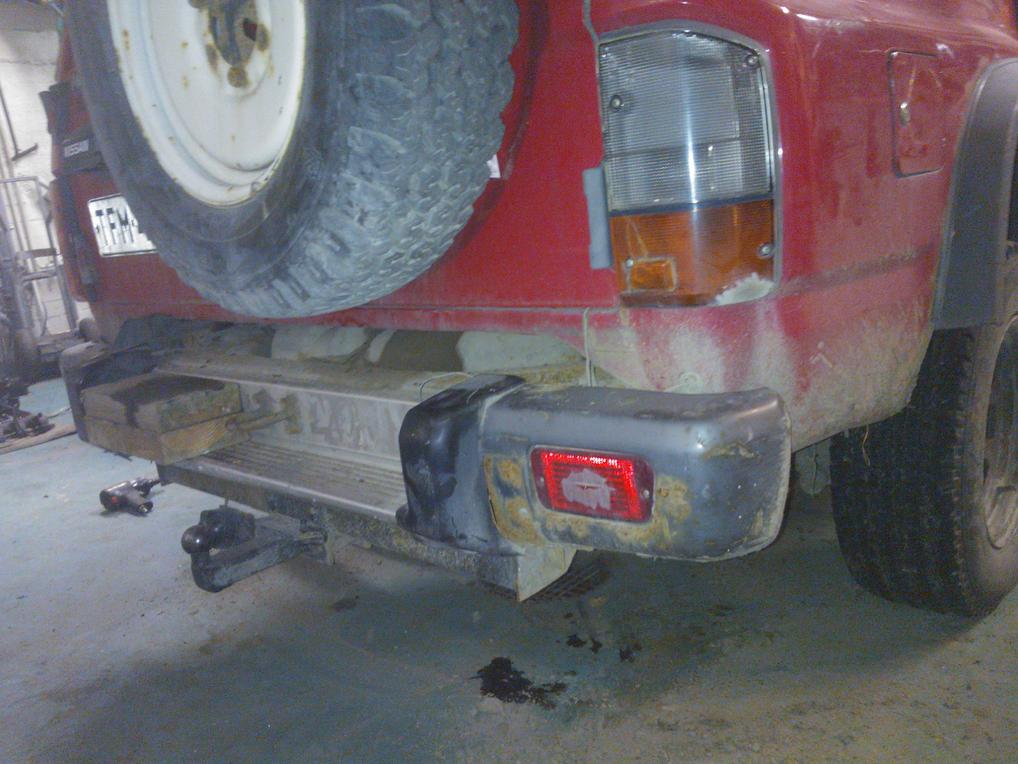 vähän joutuu avartamaan että mahtuu pyörimään. sehän käykin kätevästi kun ottaa ruosteet pois rälläkällä sillai kolmisen senttiä ympäriinsä kaarta ja vähän roikeläpyskää sitten levikkeeks... etupuskintakin aloteltiin vähän, mutta välillä kuulemma tultava pitää mammaa hyvänä! PRKL... puskuri jäi aikas pahasti viel vaiheeseen huomenna jatkuu! niin ja etupurkuri on 150x50x5mm RHS:ää painoo tuloo ilman vinssiä semmonen 35 kiloo vähän reilu mutta kyllä kestää sitten kavereita työnnellä mehtässä! |