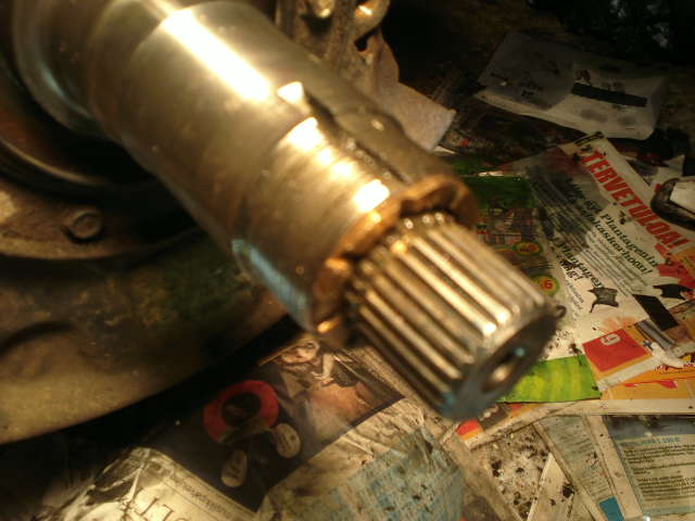 Kartioholkit, joiden irrottamiseen olin varustautunut mega-arsenaalilla sekä valtavalla tietopaketilla, lähtivätkin ihan liiankin kevyesti irti ja loppukin navasta purkautui ihan mukavasti. Kauheasti on muuten vaseliinia tuolla navassa. Pyöränlaakeritkin menee uusiksi. Mutta sitten itse kysymys: mittasin vetoakselin ja messinkiholkin välykseksi 4,8 mm yhteensä eli sitä taitaa olla liikaa? Pystyykö tuon holkin imemään pois tuosta ulkokautta vai pitääkö odotella niin kauan, että on koko napa pois palloista ja vetoakseli pakenee pois holkin sisältä ? Kuvaamishalut ylitti taas kuvaamiskyvyt