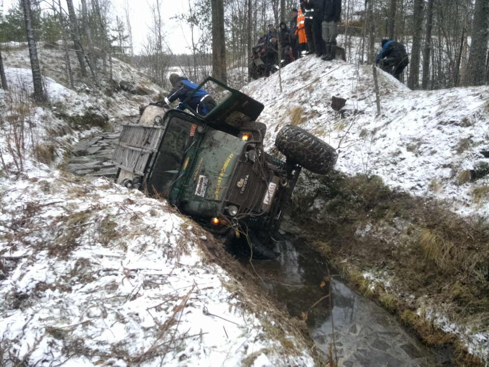 Kiitos Pekka & Raisa ja kumppanit hienoista kisoista ja erittäin hienosta tarkoitusperästä jonne kisojen tuoton ohjasitte. Tästä voi Suomen offarit ottaa oppia tuleviin koitoksiin. Kaikilla meillä oli varmasti hauskaa. Vaativiakin rasteja oli ja muuta mukavan leppoisaa ajelua, unohtamatta oheistapahtumia... Ei tarvinnu hampaat irvessä latua pyytää keltään... Meidän omat tiimitkin jollai lailla tsemppasivat ja sijoittuvatkin jollai lailla, mut parasta oli se, et kaikki saivat kuitenkin palkinnon... Ei tullut kalustovaurioita suuremmin meille, Jannen LJ:n sähköt vähän kärysi moottoritilan puolelta ja takavaloista tuli nykysuuntauksen mukaisesti kirkkaat. Jukan Wiljamista lohkesi MASKI!!! voi sitä itkua ja hammasten kiristystä!!! Lintutornin raidetangon pää tykkäs katketa linjan alla vellissä revitellessä, mut näin tehdastiimin kannalta huolto oli ajan tasalla ja saimme uuden paikalle ennen kun vanha oli edes irti... En sit saanu kokonaan sitä kaadettua vaik kovasti yritin!!! Kyl se on kone!!! Kiitos Pekka ( tallipäällikkö) luottamuksesta, et teit tämän kokemuksen mahdolliseksi. Vähän kyl jäi ajatus, et hiukan olit mustasukkainen Tornin lainaamisesta, kun veit meiltä sen keskellä aamuyötä, kesken kisan, ainaskii pariksi tunniksi!!! No, pitihän Tapsan&Rapsan rengas saada täytettyä... Eikä siin menny ku vajaa tunti... Uutta tapahtumaa odotellessa.. Syvä kumarrus koko Mikkelin porukalta.