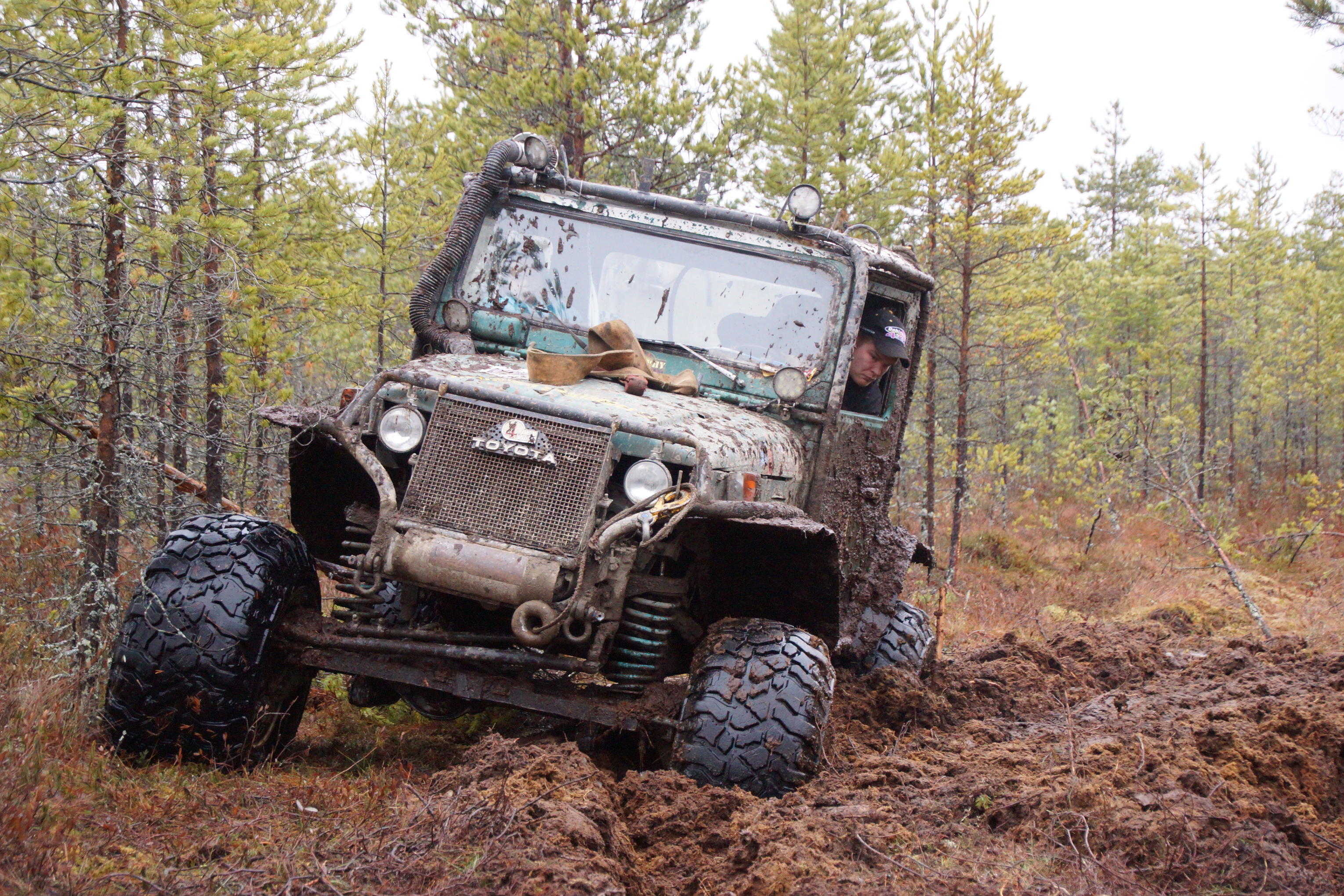 Kiitokset järjestäjille ja maanomistakille Team Ahdasta puolesta, vaikka hyvinhän tuonne Hiluxin ohjaamoon kolmekin sopi. Kisa meni mukavasti murrosten loppumista lukuunottamatta. Yksi vaihdettiin yöllä ja toinen hajosi puolenpäivän aikoihin. Siitä sitten vajaavetoisena vinssailtiin tielle ja useampi tunti jäi ajamatta.