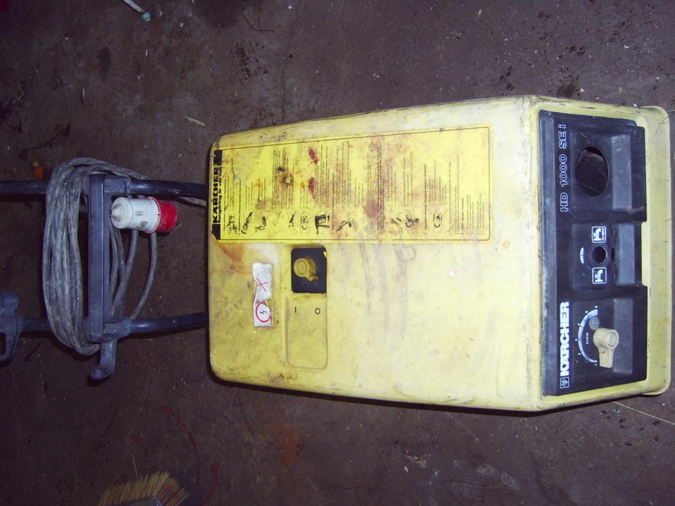-painepesuri Kärcher HD 1000 SEi, wanha vuodelta -85, voimavirralla ja 15m uudehkolla paineletkulla, mukaan pikavaihtosuutin piste/viuhka sekä kiinteä viuhkasuutin, painemittarin neula on poikki, 350e MYYTY