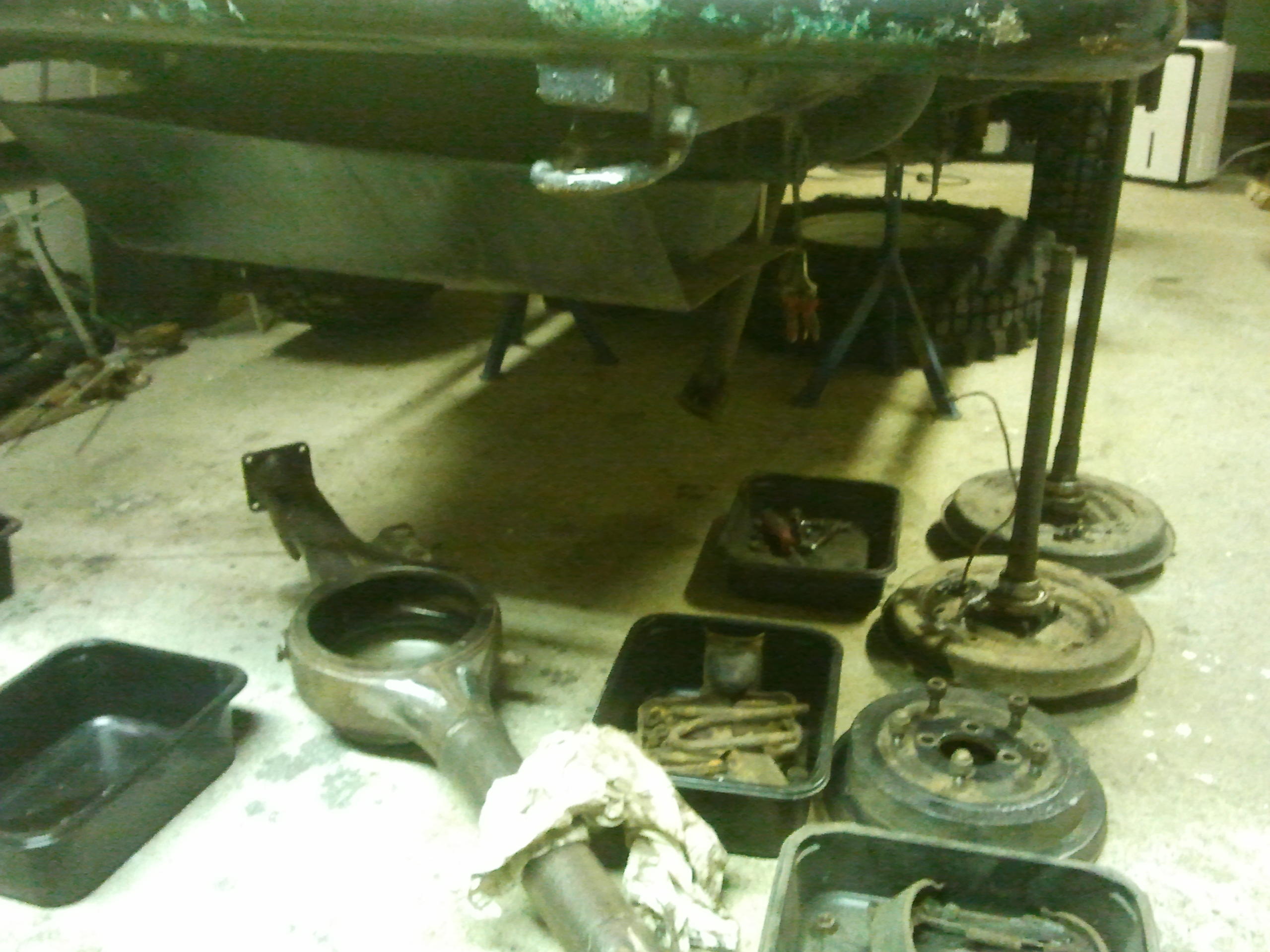 Pientä talvihuoltoa aloitellessa. Taka-akseliin tarvis laittaa uudet pyöränlaakerit ja perä tarkistaa välyksiltään. Soan teen samalla kun muutenkin joutuu jousen tallat hitsaileen kun ovat ihan vääntyneet.