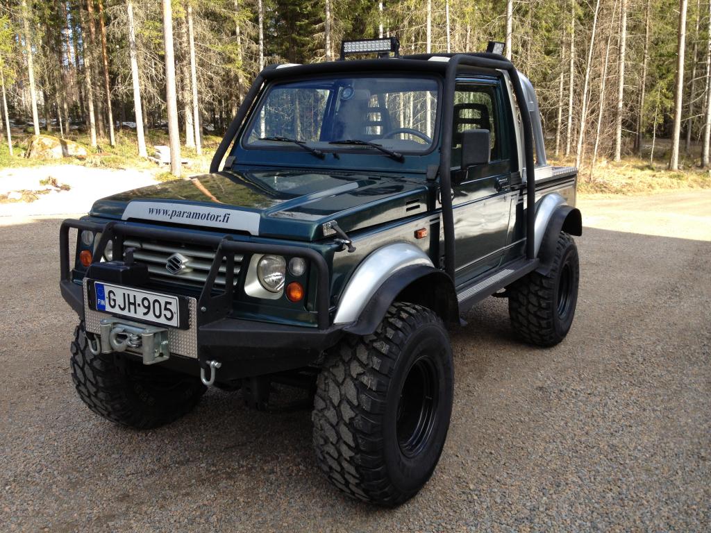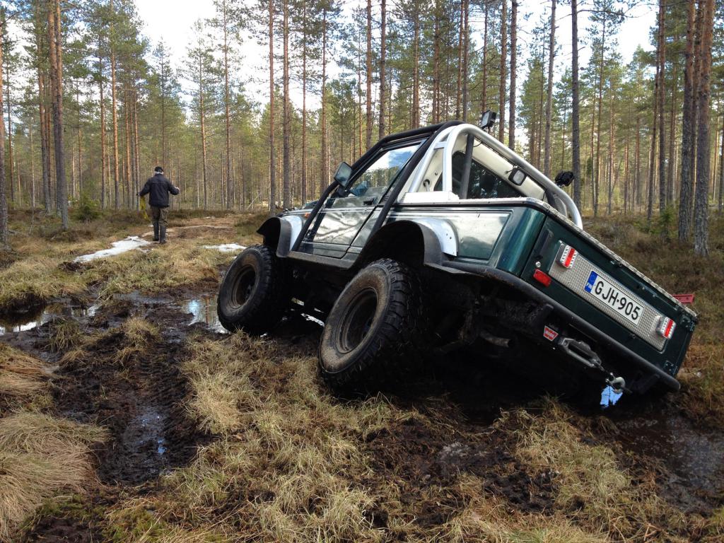 Vähän Speksejä: 306 pösön 1,9 TD kone Hitaat maastovälitykset 33/12,5 GT radial MT renkaat 10 tuuman et -44 vanteilla Calmin korotusjouset Koria ja järeitä puskureita nostettu 45 mm Etupyöräkoteloita hiukan avarrettu 6 piste vaatimukset täyttävät turvakaaret + järeät 4 mm helmapalkit. Pohjapanssarit 2 akkua TML kompressori 1500 W invertteri iPad karttaselain suunnistukseen Warn vinssit kaukosäädöllä molemmissa päissä ARB paineilmalukot molemmilla akseleilla Led maastovalot Hi Lift tunkka Tarvikelaatikko lavalla. Katsastettu. Vielä laittamatta: Etuvinssiin naru ja narukita Helmapalkkeihin levikekumit kuraroiskeita varten Tehokkaampi tuuletin syyläriin Viimeksi muokannut Lentäjä : 01.05.2013 19:01 |
