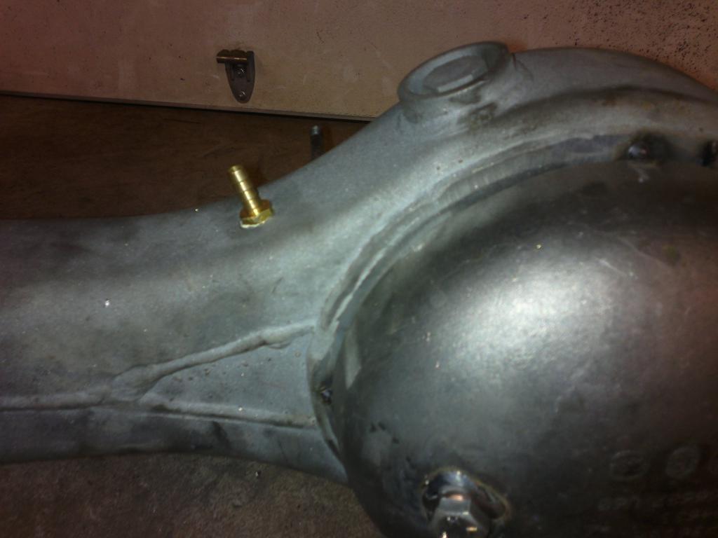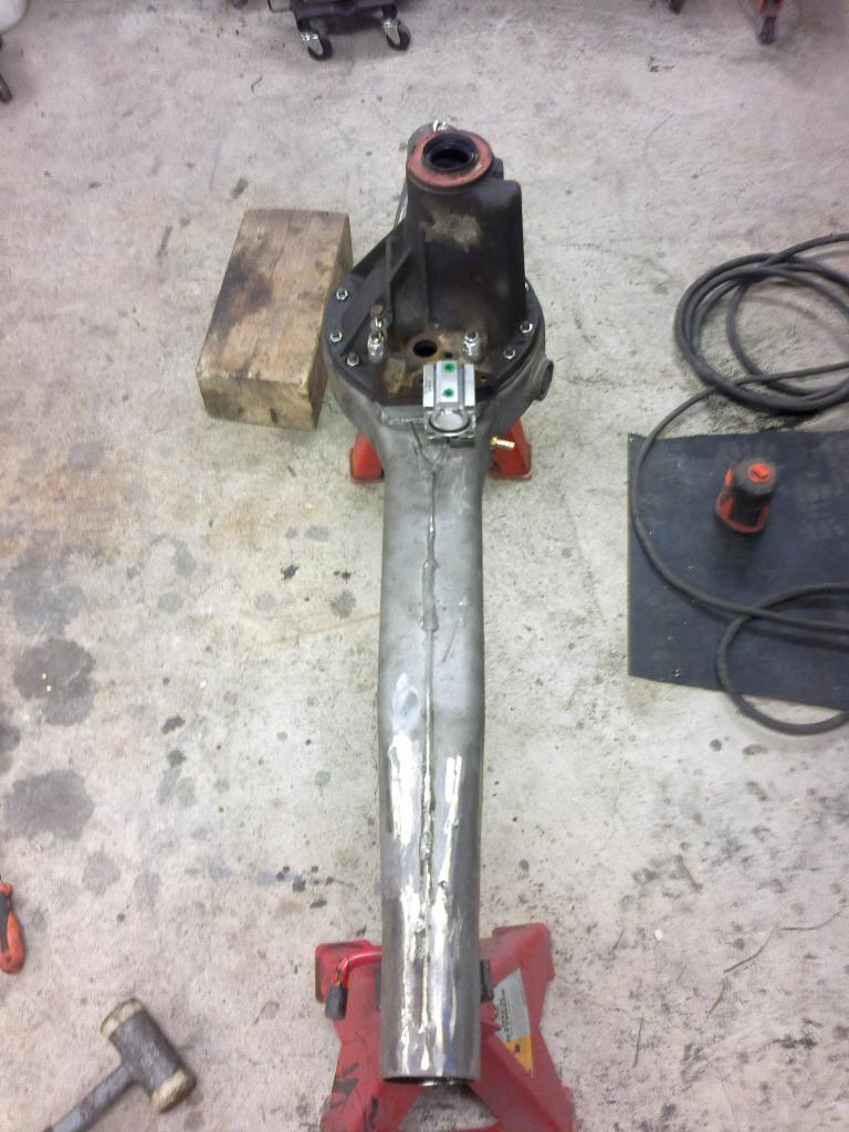 eli mutteri hitsattu sopivaan reikään ja pultti katkottu sopivan mittaseks + kupariprikka tiivisteeks: Sitten nappasin vanhasta peränkuoresta propun uusiokäyttöön, samoten G mersun takapanhardin toisen pään, porasin perän alapuolelle reiän ja hitsasin kahtapuolta 'putken' banjoon ja vanha proppu sen sisälle suojaan. Nyt ois taas tyhjennysproppukin mistä saa ainakin enimmät peräöljyt ulos. Saumasta tuli kyllä paljon tasasempi kuin mitä kuva näyttää ja hitsattu molemmin puolin joten luulis että pitää... Viimisenä tuli tekastua tuosta takaperän pinionin laipasta ns. double drilled version eli nyt siitä löytyy oikea jako myös tuolle sovitinlaipalle.Ens viikolla jos kävis vaihtamassa migin pullon täyteen niin vois hitsata tuon putkipäädyn paikoilleen ja pääsis miettimään alapuolen panssaria/materiaalin lisäystä että kestää hieroa eikä mee puhki ihan heti... Viimeksi muokannut mparty : 20.04.2013 18:21 |