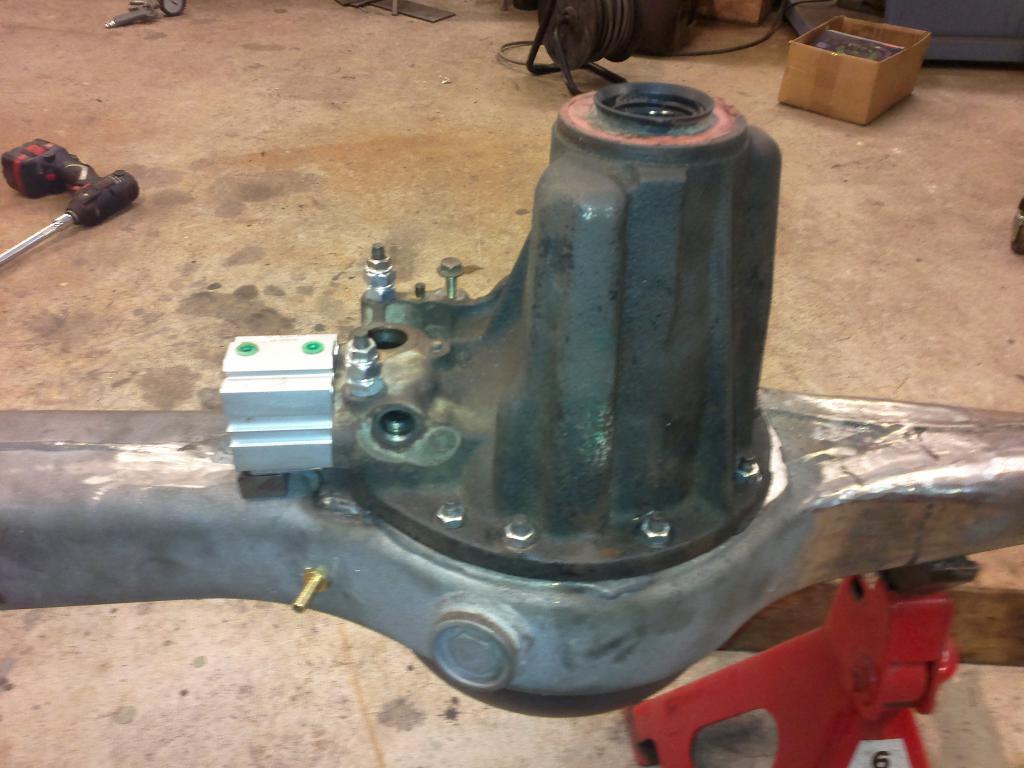 Eli sähköliimasin sitten rautaa etuperään eli 12mm tankoa tuohon perän alakulmaan ja 5mm rautaa perän alle. Joskos tuo nyt kestäs vähän aikaa hieroa ennen puhki kulumista... Sitten piti vielä viritellä tuo etulukon pa-ohjaus loppuun eli lukon siirtohaarukan akseliin hitsasin kierrettä pätkän ja se ruuvautuu sylinterin männän päähän. Ei menny ihan ku strömsössä, lukon siirtohaarukan akseli ei päässy tarpeeksi perääntymään sylkkyyn päin tuosta laipasta huolimatta joten otin ja tekasin 'spacerin' vielä tuohon väliin ni johan rupes pelaan pienen hienosäädön jälkeen. Toinen vaihtoehto olis ollu lyhentää sitä akselia mutta ajattelin pitää sen mahollisimman lähellä orkkista. Video pa-ohjauksen toiminnasta: http://www.youtube.com/watch?v=qMuVF...ature=youtu.be Nyt etuperästä ei taida puuttua enää kuin välitykset ja sitten jo pitääkin etuakseli työntää tuonne Jeepin alle jotta voi nuo kiinnikkeet ja kääntöpäät viritellä. |