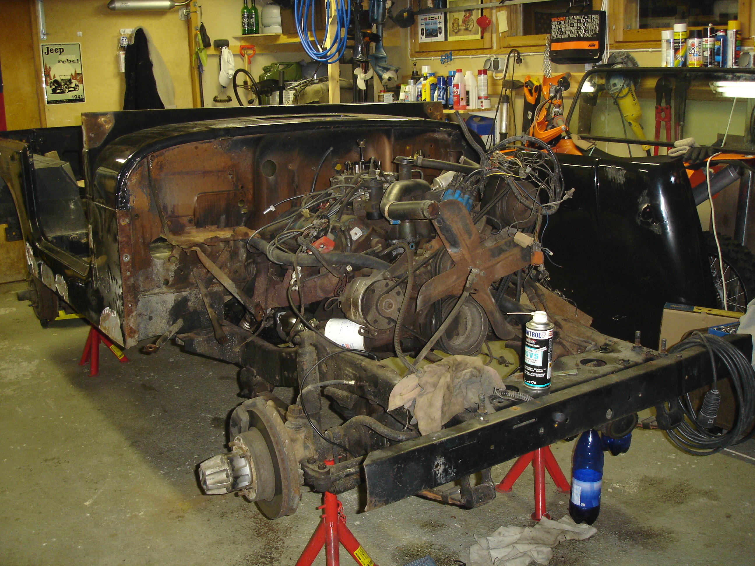 No eipä mullakaan kiire ole, auto tuskin liikkuu omin avuin ennen ens kesää. Vähän toi budjetti rajoittaa tahtia, kun pitäis yhtä aikaa tehdä koko auto. Ja kuten totesit, korikin kaipaa uutta peltiä. Oon nyt vähän etsiskelly josko sais jostain sopivasti uudet kylkipanelit tohon koriin, vai pitääkö alkaa vääntämään suorasta...