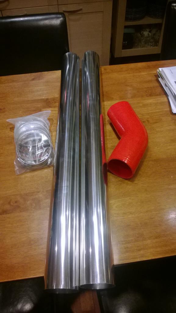 Sitten alumiiniputket mittaan, uus silikoonimutka paikoilleen, klemmareilla liitokset kiinni ja snorkkeli kiinni koriin.