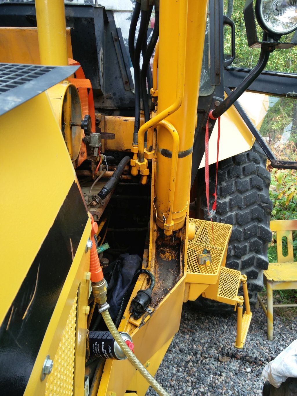 Aijemmin yritin irroittaa tappeja tukijalkojen sylintereistä tuloksetta m20 kierretankoa ja jatkomutteria ulosvetäjänä käyttäen tuloksetta. ilmeisesti korvakot kiilautuvat tappia vasten eikä edes lämmittäminen happi asetyleenillä auttanut, joten saavat olla paikoillaan ilman purkamista... koska näyttää siltä että pitäisi leikata tapin korvakot halki tapin ulos saamiseksi jossei jostain löydy esim. jonkunlaista hydrauli tunkkia/prässiä jolla voisi työntaa tapin pois tukijalan sylinterin korvakosta. |