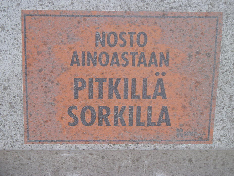 Bertan turvakaaressa oli duunista raapastu "Painopiste korkealla, tuettava siirrettäessä" tarra. Sj:sä emännän dunissaan duunaama "Yks vxxxn koirankoppi!"