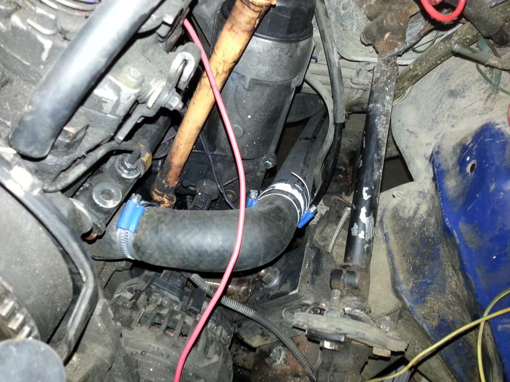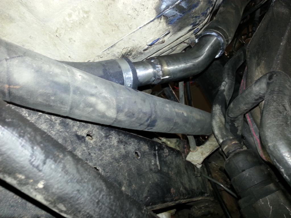 Eli poistan mersun laatuosan autosta ja teen uuden paisarin itse.Elikkä tuo ylempi letkuliitin on moottorin ylävesiletkusta tulevalle letkulle paikka. Jolla saadaan ilmat pois koneesta. Tulee automaattinen ilmaus tällä tavalla. Alemmasta liittimestä sitten vesi syyläriin. Painekorkki tuohon täytyy vielä juottaa kiinni ja tehä reikä. sekä hitsata toinen pääty kiinni.