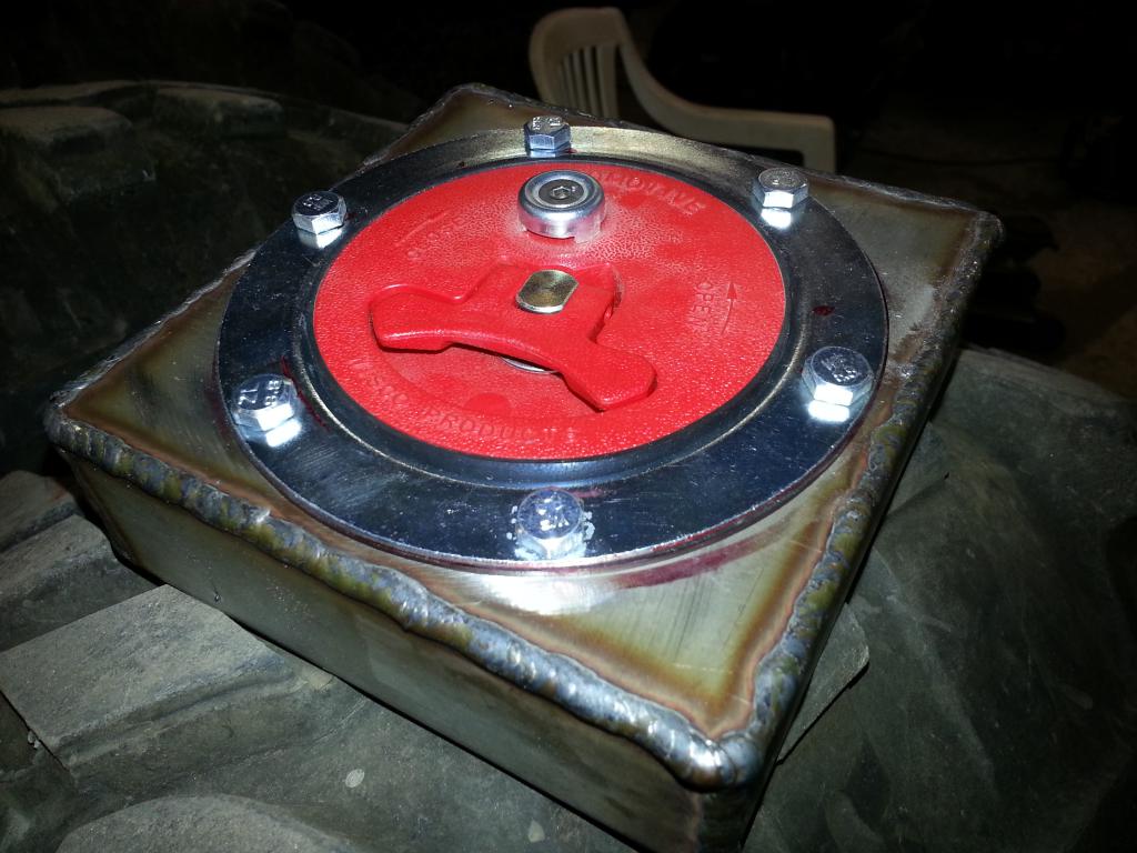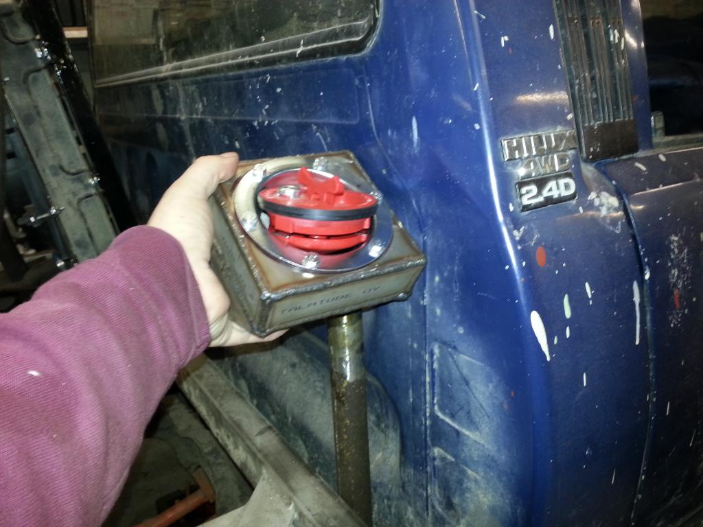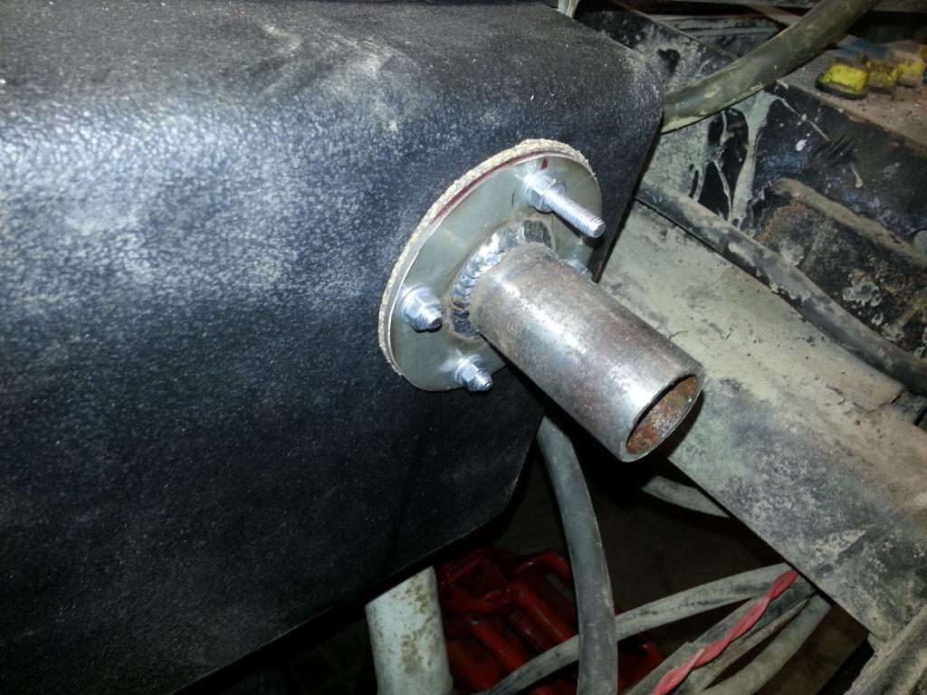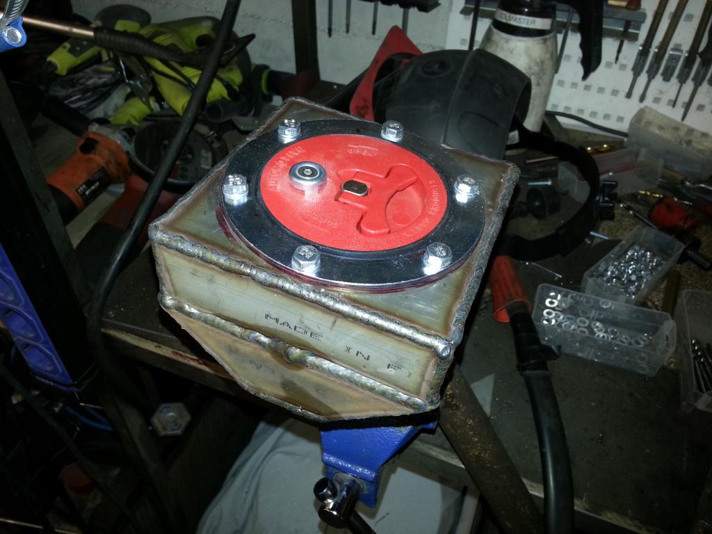 Tankkia olisi kiva tankatakin. Turvatankin alkuperäsen korkin tilalle tulee laippa johon tulee polttoaineanturi. Tein uuden reiän tankin kylkeen johon tulee täyttöputki. Kaksi laippaa, Kaksi 3mm korkkitiivistettä. Siihen putki, josta lähtee letku ja viedään tankkauspiste hytin taakse.