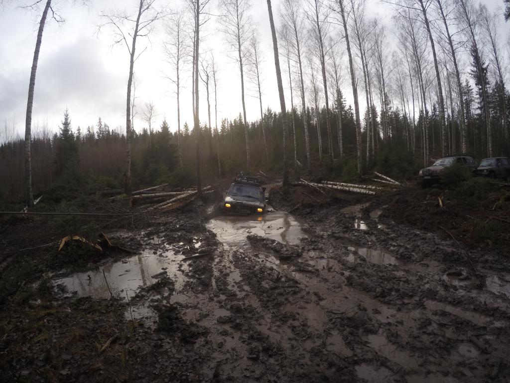 pari räpsyä sain otettua lauantailta. Oli reitit aika syviä ja kosteita. Gopro:n käyttöä alettu opettelemaan ja sain yhden klipin räpelletyä kauheella kiroamisella. https://youtu.be/_y6tYqhTnHc Sääliksi kävi Wagoneerin maskia kun puu sukelsi siitä sisään.