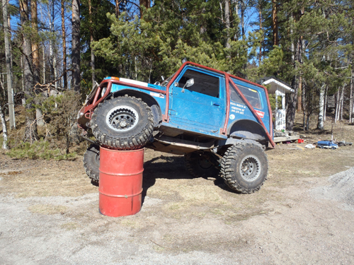 Ja jos ei auto jousta tarpeeksi, löytyy sitäkin varten tynnyrit |