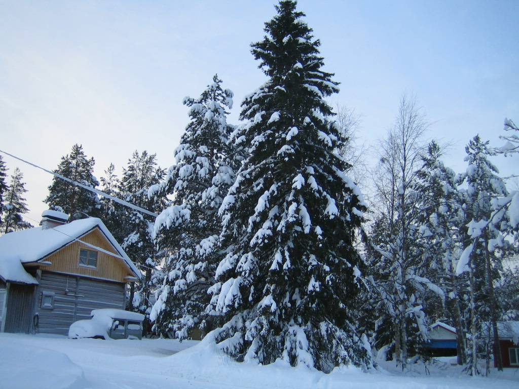 Auton ajoin oletettuun kaato suuntaan tarpeeksi kauas. Puuhun kävin kiikkumassa köyden pään johonkin neljään metriin ja toisen pään laitoin ketjuuun ja sen laitoin sitten vetokoukkuun kiinni. Autolla vedin narun aavistuksen tiukalle. Sitten vetasin Huskun tulille ja sahasin ensin kaatokolon kaajettavalle puolelle ja sitten sahasin toiselta puolelta melkein puun poikki, mutta kuitenkin silleen, että puu pysyi ittestään pystyssä. Sitten hyppäsin autoon ja pikkupuolella lähdin nätisti vetämään puuta nurin. No sittenpä se puu jysähti tonttiin ja vieläpä oikeaan kohtaankin. Ruottalaisista poiketen en saanut mitään rikki pihapiiristä vaikka tarjolla olisi ollut pari rakennusta, kaksi autoa ja yksi sähkölinja. Latvan vieressä oli orava hieman hölmönä ku se oli vissinkin ollut puussa kaadon aikana, mutta kyllä se siitä reippaana lähti liikkeelle. Karsin oksat ja pätkin rungot. Siinäpä se. Tämähän on sitten semmosta amatöörin puuhastelua, että näillä opeilla ei kannate lähteä puuta kaatamaan jos ei varmasti tiedä mitä on tekemässä. Mutta tällä tyylillä olen joskus ennenkin saanut puun hallitusti nurin. |