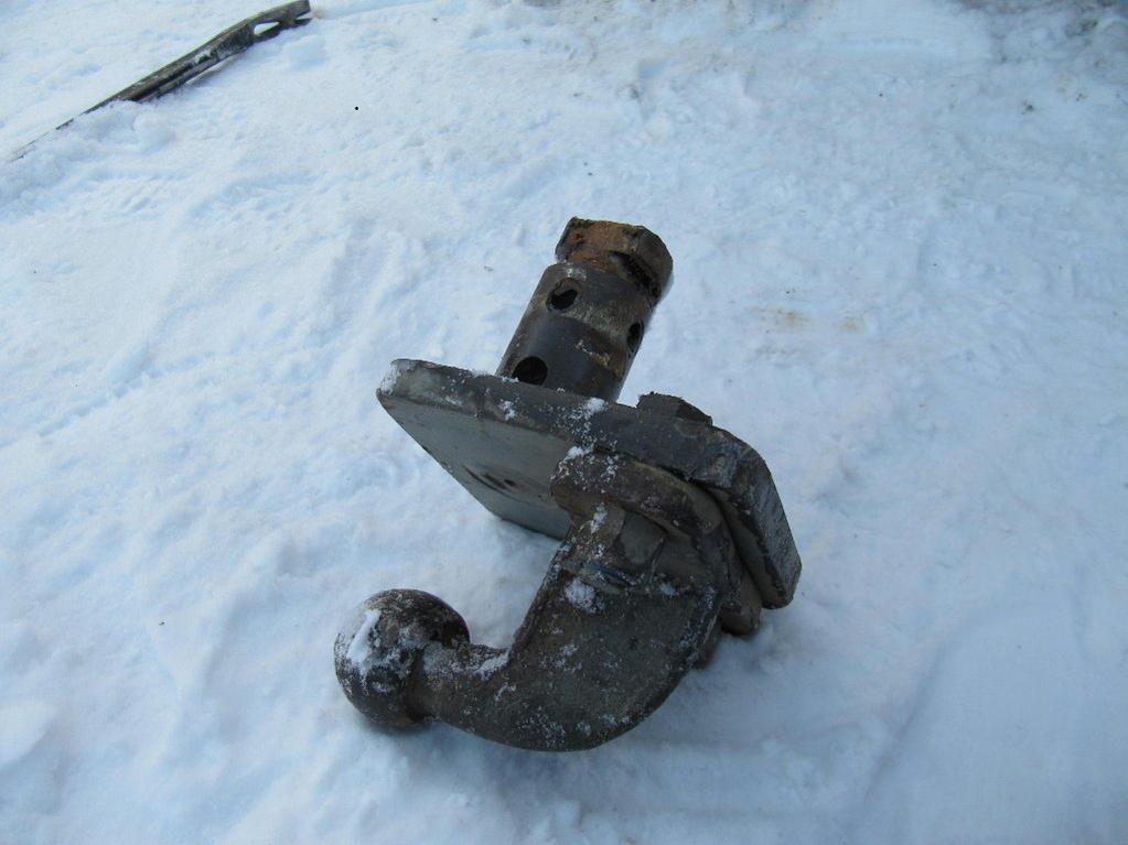 Suutuspäissään siitä ettei tarvinnutkaan säätää niin irrotin tuon "irrotettavan" vetokoukun. Joku joskus kyseli miten tommonen irtoaa niin ekaksi siitä ruuvataan se koukun oikealla puolella oleva ruuvi auki, sitten sitä tulee vetää vielä n. sentin verran ulospäin ja sitten väkivalloin vääntää koukkua vastapäivään 90 astetta. Tämän jälkeen koukun ja runko-osan väliin jotain ja vääntämään koukkua irti sijoiltaan. Tällä kertaa ei rikki mennyt kuin ison sorkkaraudan sorkka..