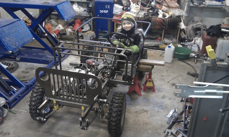 Kiinanlaite on tuttu ja harkitsin sen ostamista Saksasta(Silloin lähin mistä löytyi). Tekemällä itse ei nyt säästä mitään ja tuntipalkoille ei pääse, mutta muutaman asian pystyi vaikuttamaan, mikä tuossa kiinanautossa häiritsi. Mm. jousitus ja pikkasen isompi mittakaava.