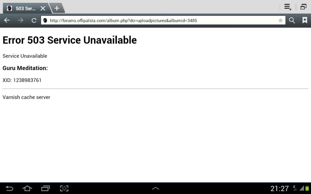Taasen pikku ongelma,laittelin noita kuvia ilmoituksiini ja 4 kerralla vasta meni läpi.Eli herjaa error 503 guru meditation sen 3 ekaa kertaa ja 4nellä menee sit kuvat läpi.