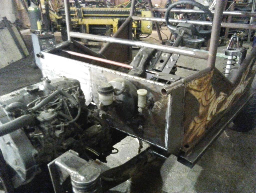 Väliprojekti etenee hitaasti ja varmasti. Pohja ja runko massattu. Uudet jarruputket väsätty. Uusi poltoainelinja viellä ois tehtävä. Puskurinkiinnikeet joutu soveltamaan ku tuli toi korinkorotus tehtyä.