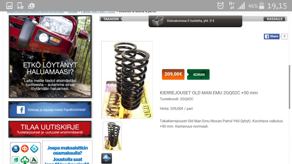 Eli nyt saa sitten tarjotella jos löytyy 2" nostavia jousia ETEEN