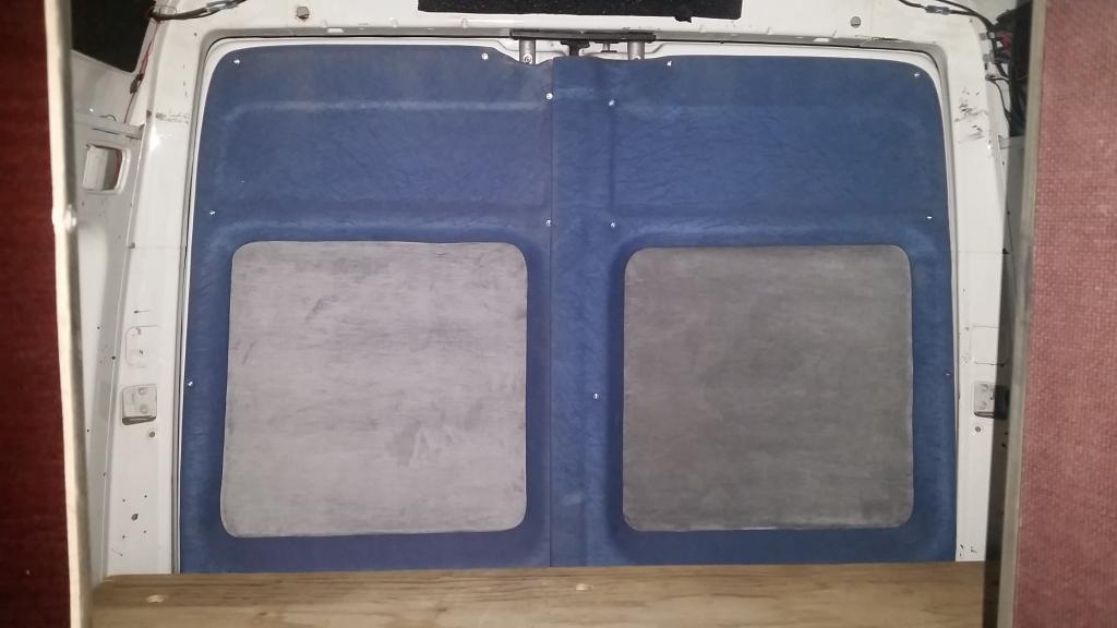Makuukammarin verhoilua. Purin sisustan osia vanhasta pikkubussista jotta vähä nuo kaikki muodot helpottais kankaan laittoa. Sini/harmaan meinasin väkertää vaikka salamavalo vääristää hieman värejä.