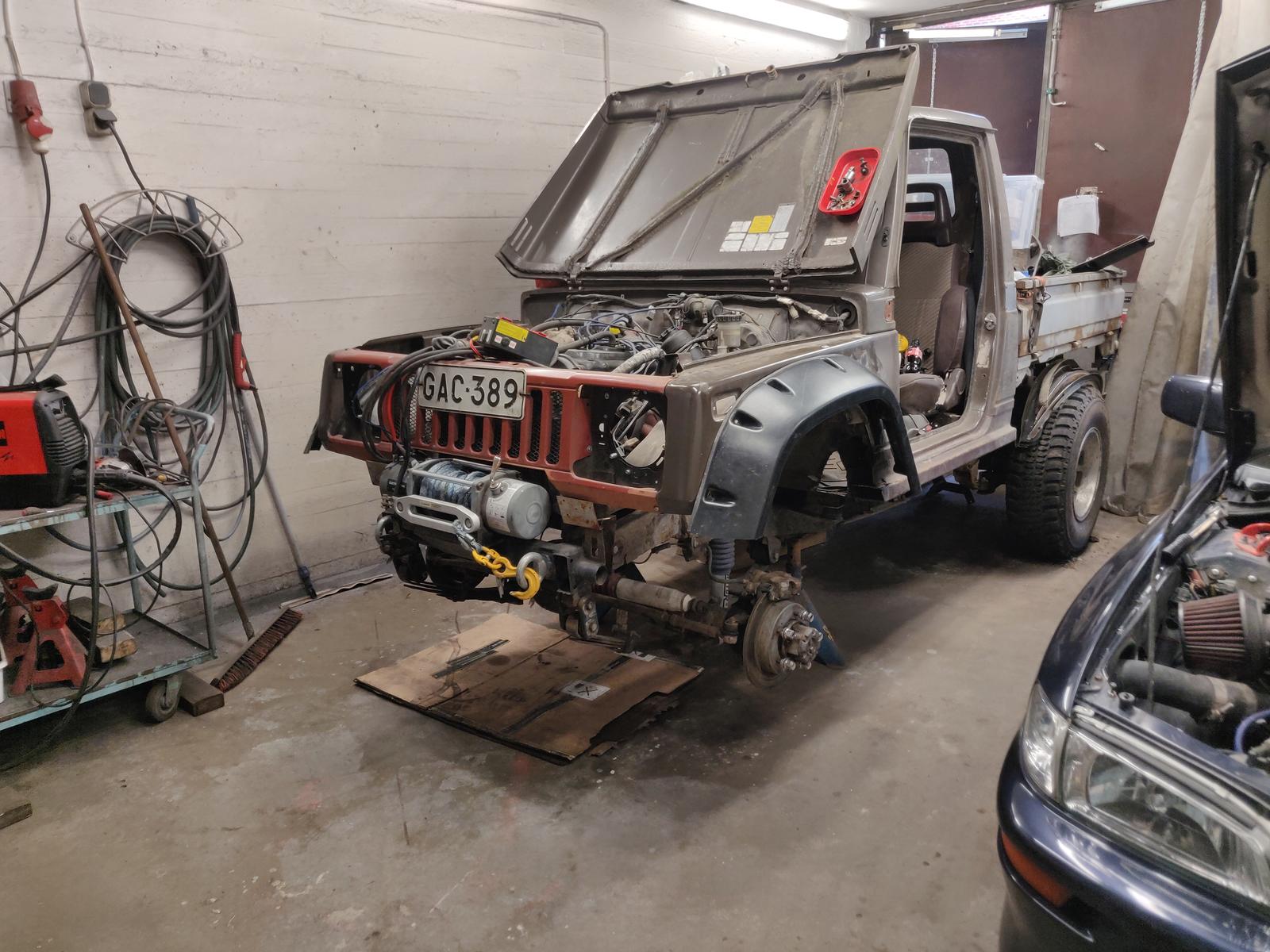 Porailin alkuun Samurain orkkis levikkeen kiinnikkeet irti, näähän on ihan ruosteettomat ja siistit, kun joskus on laitettu ihan uudet etukulmat tähän. Sitten suihkuttelin plasmalla menemään, tavaraa kolisi peltiroskikseen jonkin verran ![]() Helmapalkki lyheni 50mm Samalla tein viisteen kuskin ja apparin jalkatilaanOtin alkuun vähän turhan ujosti siivua lokarista, toisella kerralla alkoi olemaan sopiva roilo Etukulmasta reilu kolmio kans, tää tuli aikanaan valkuaiseen tehtyä liian varovasti ja sen huomaa, että rengas on hieronut tässäkin tuohon kohtaan Kohtalokkaan FJDC Helatorstain Viron safarin jälkeen Bushwhackerit eläköityi valkuaisen pelleistä. Kaksi levikettä pilkoin niin pahasti, että olisi uudet pitänyt ostaa, mutta jotenkin perse ei sitten kestänyt sitä 350€+rahti+tulli+alv No tähän värkkiin riittää kaksi ehjää ja taakse on suunnitelmat olemassa, josko pilkotut saisi hyödynnettyä siellä.
